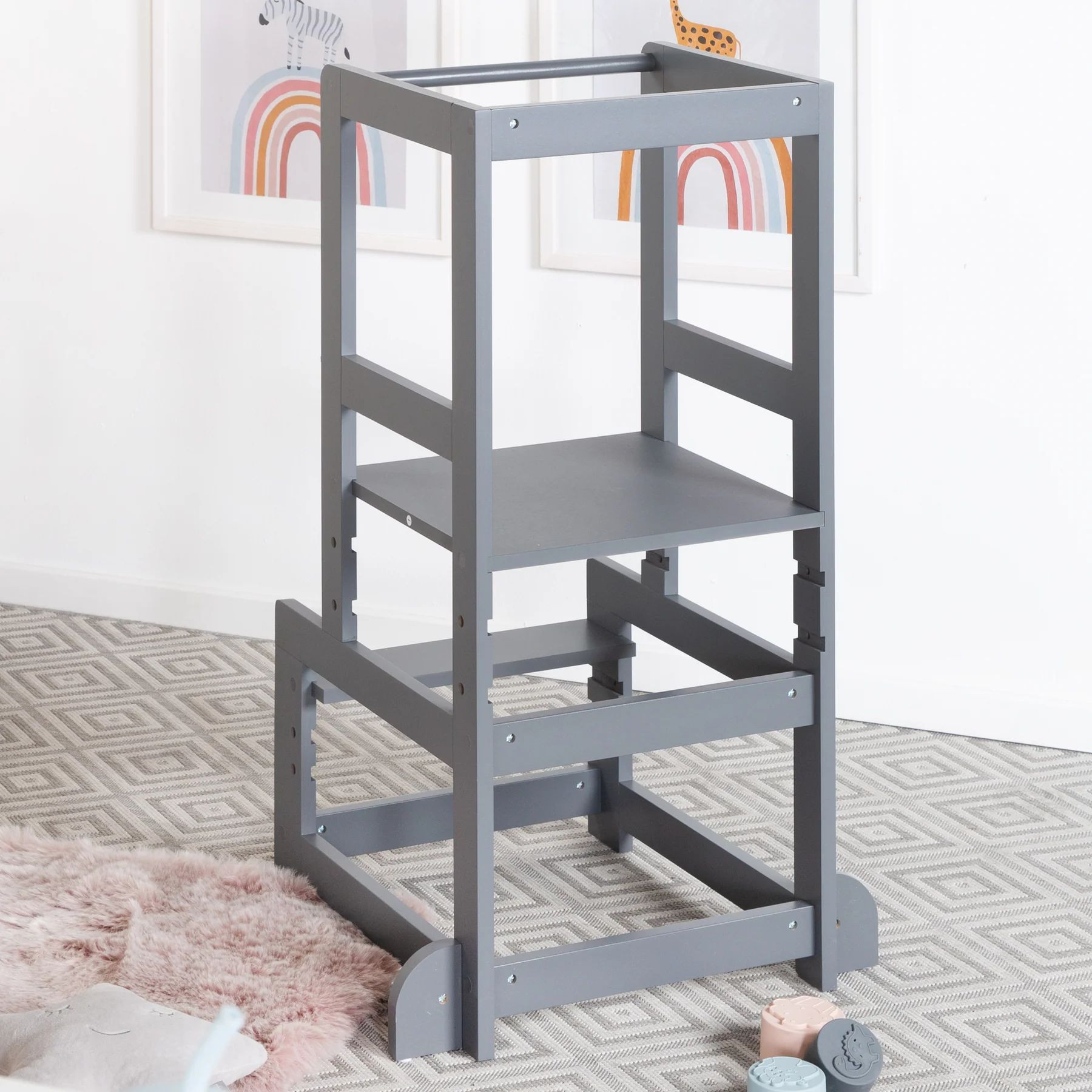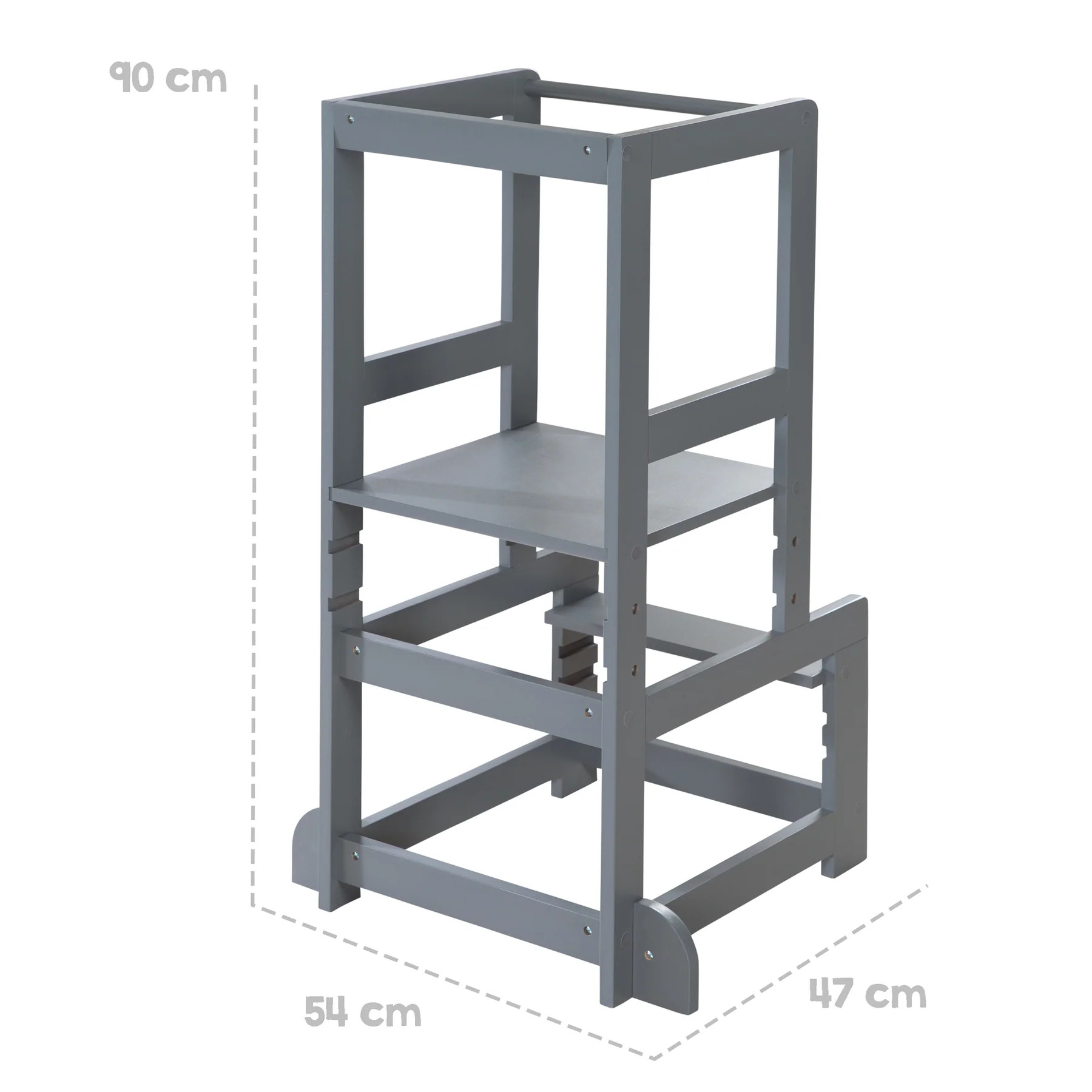 Montessori učící věž je velmi stabilní a bezpečná stolička pro děti, která je navržena podle principů Montessori tak, aby podporovala samostatnost vašeho dítěte. Díky třístupňově nastavitelné výšce plošiny (35 / 41,5 / 47,5 cm) a schůdku (15 / 19 / 24 cm) lze učicí věž využívat po mnoho let.