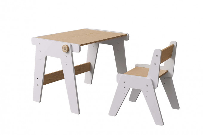 Stůl, sedák i opěradlo jsou lakovány vodou ředitelným lakem, ostatní části jsou přírodní, hladce obroušené a bezpečné. Souprava je vyrobena z vysoce kvalitní lakované překližky se zaoblenými hranami. Nábytek má univerzální a minimalistický design, který se hodí do každého interiéru.