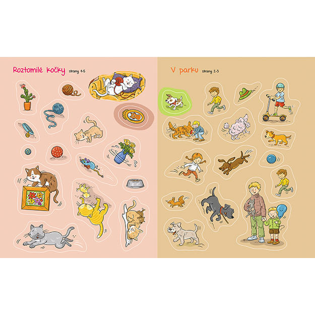 Samolepková knížka obsahuje 16 barevných stran a 8 stran samolepek k dolepení.
