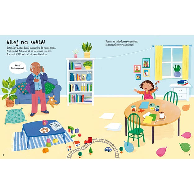 Samolepková knížka obsahuje 16 barevných stran a 8 stran samolepek k dolepení.