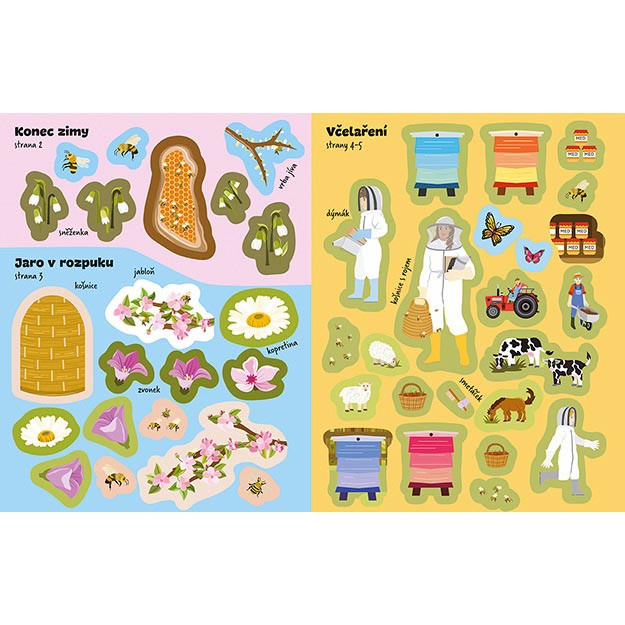 Samolepková knížka obsahuje 16 barevných stran a 8 stran samolepek k dolepení.