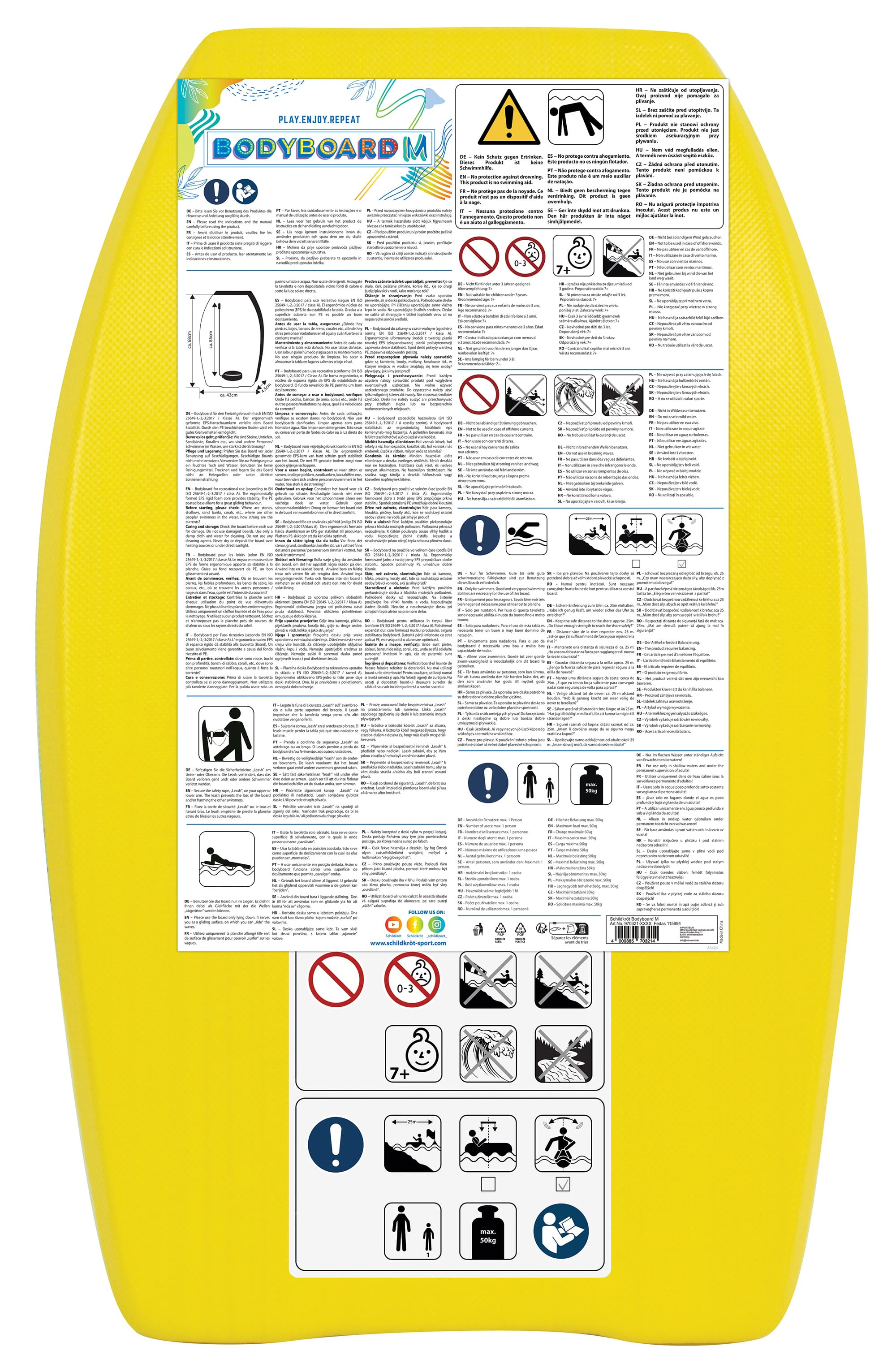 Bodyboard Schildkröt je skvělý způsob, jak se seznámit se světem surfování. Středně velký bodyboard M měří 68 x 43 x 4,5 cm a váží 320 g. Je ideální pro horké letní dny a zábavné surfování. Má aerodynamický tvar a vysokou vztlakovou sílu díky výplni z EPS pěny s nylonovým potahem.