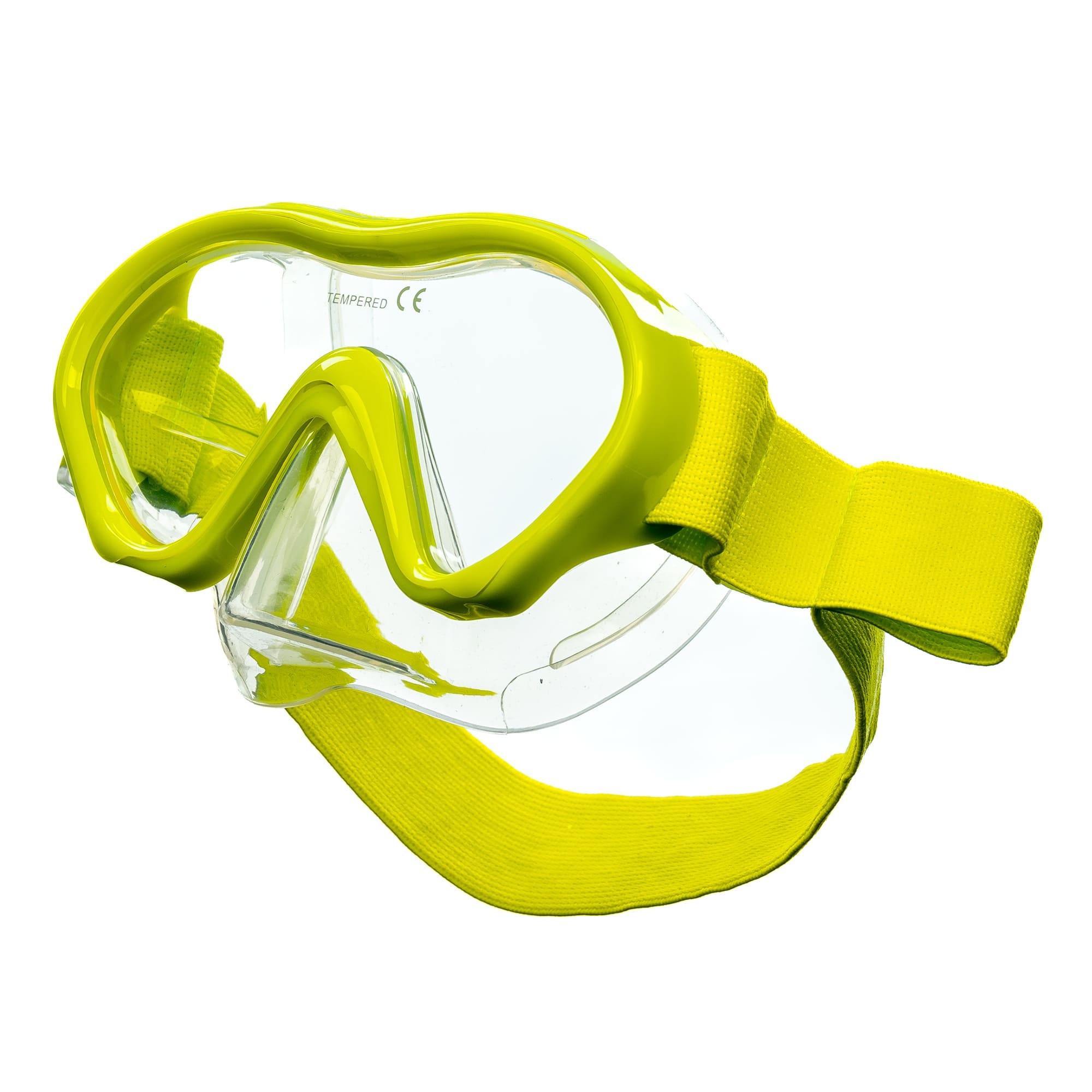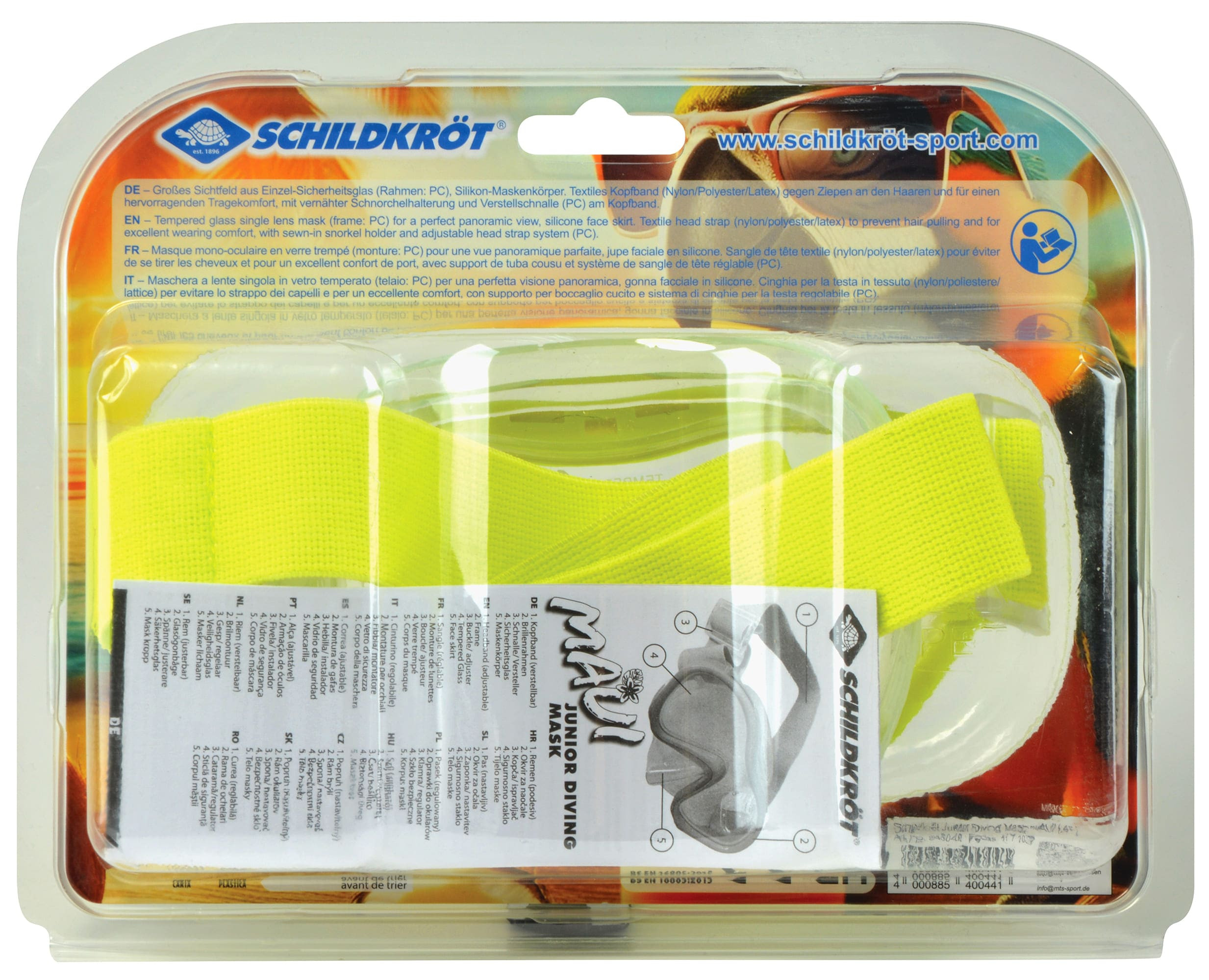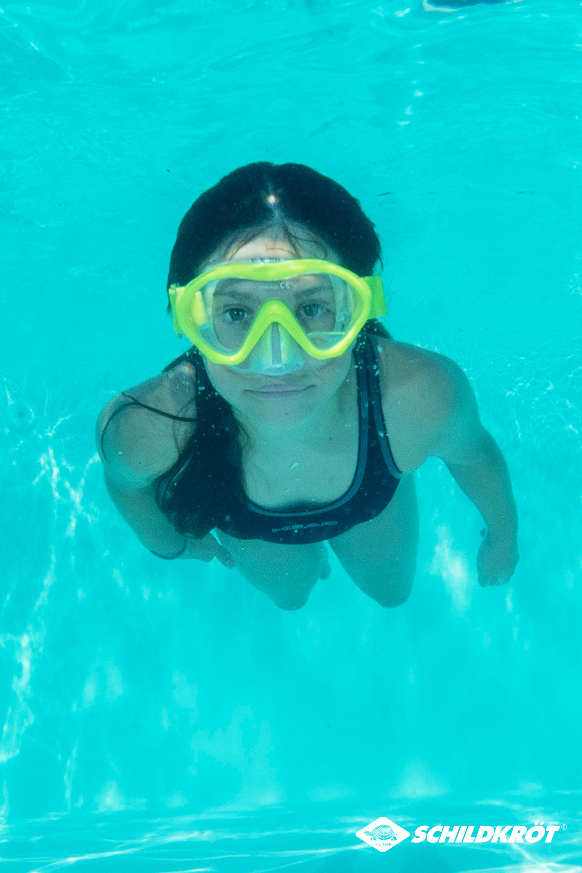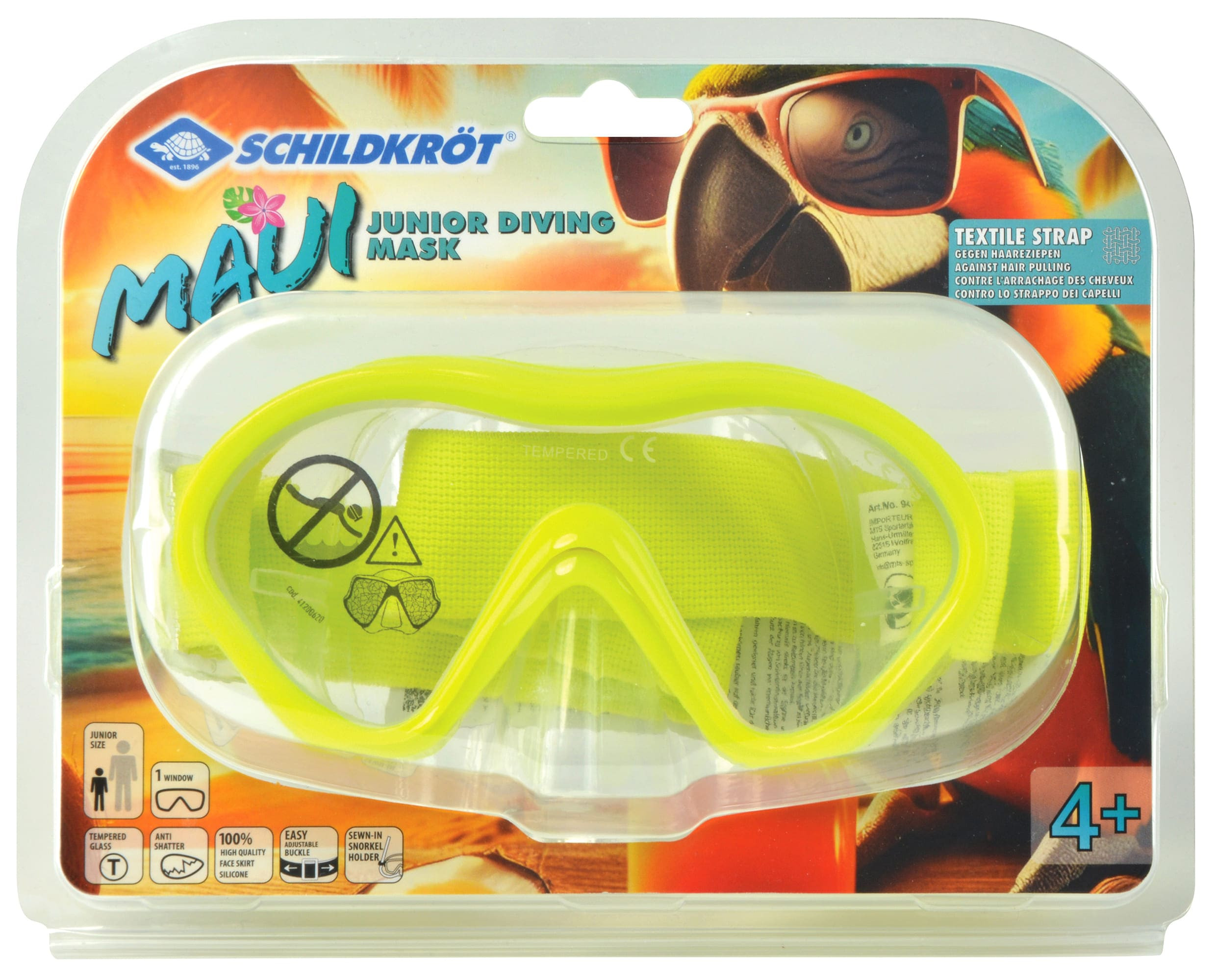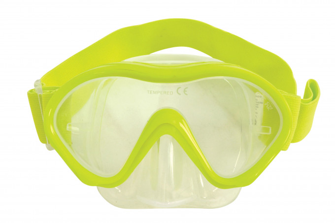 Velké průhledové sklo z jednovrstvého ochranného skla nabízí široký výhled pod vodou, takže děti mohou obdivovat fascinující svět pod hladinou. Praktický úchyt na šnorchl drží šnorchl bezpečně na místě a díky tomu děti nic nerozptyluje od dobrodružství.
