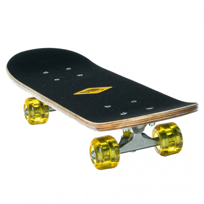 Skateboard je vybavena deskou (60,5 x 15 cm) z 8vrstvého javorového dřeva. Deska má dvojité zaoblení a protiskluzovou páskou, která zajišťuje bezpečnou a stabilní jízdu. Skateboard je kompletně smontován s robustními hliníkovými podvozky, kolečky (tvrdost 82A, velikost: 50 x 36 mm) a kuličkovými ložisky 608Z. Skateboard váží pouze 1,4 kg, a proto jej lze vzít kamkoli.