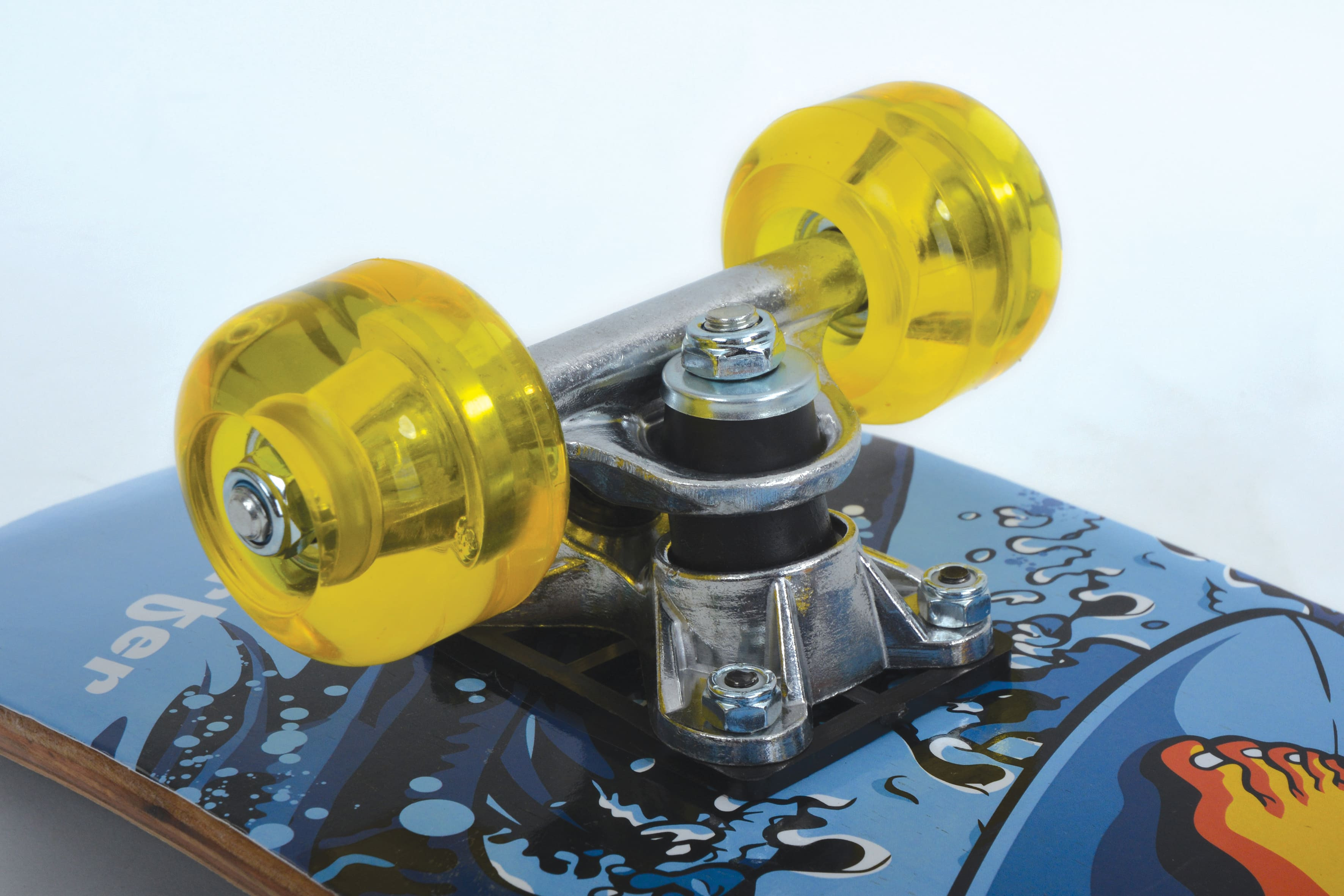 Junior skateboard Schildkröt je ideální pro děti, které se chtějí naučit jezdit na skateboardu. Skateboard je vybaven deskou (60,5 x 15 cm) z 8vrstvého javorového dřeva. Deska má dvojité zaoblení a protiskluzovou pásku, která dětem zaručí bezpečnou a stabilní jízdu. Skateboard je kompletně smontován s robustními hliníkovými podvozky, kolečky (tvrdost 82A, velikost: 50 x 36 mm) a kuličkovými ložisky 608Z. Skateboard váží pouze 1,4 kg, a proto jej lze vzít kamkoli.
