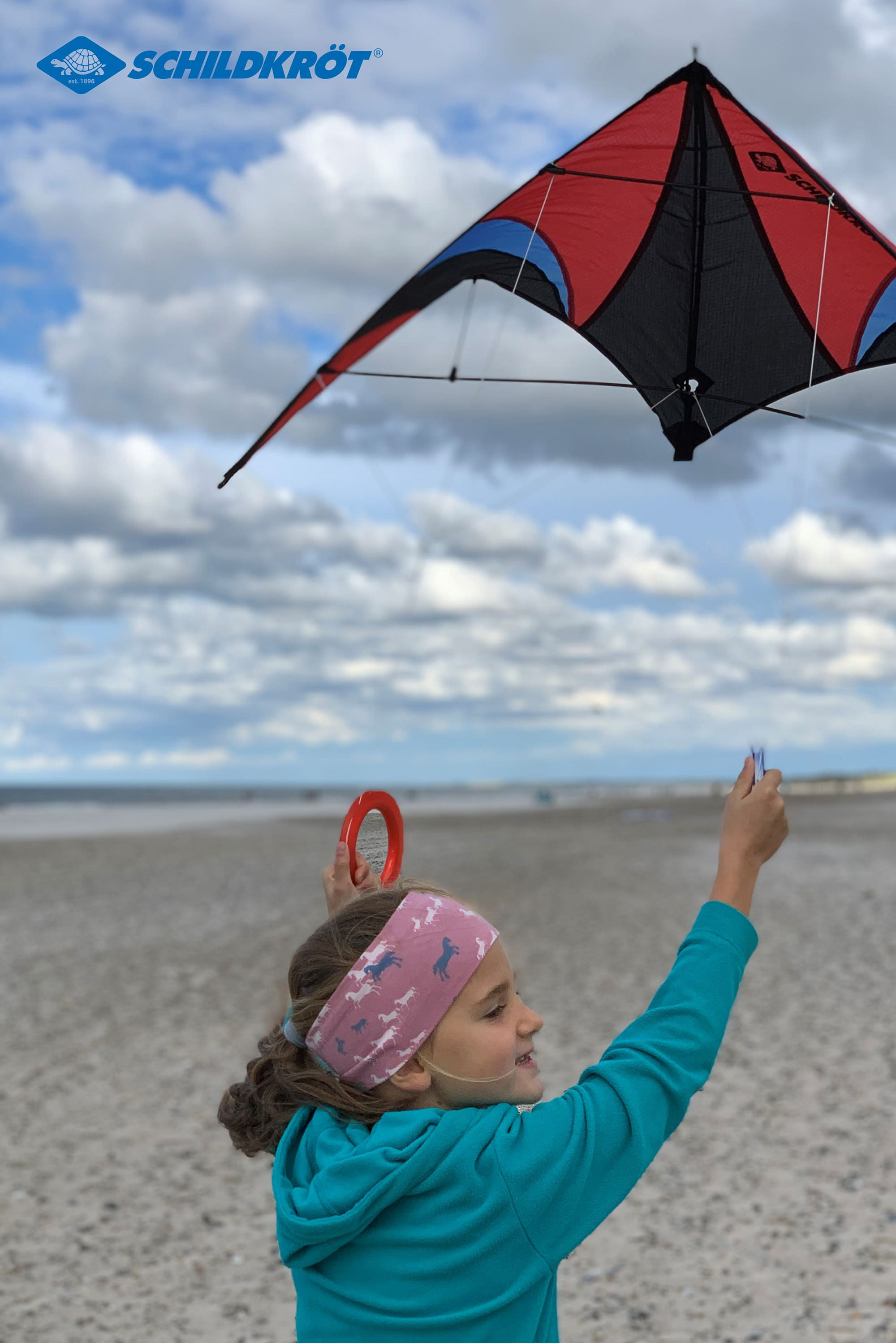 Dvoušňůrový akrobatický drak je vhodný pro děti od 10 let. Díky větší ploše je stabilnější při letu, ale zároveň umožňuje silnější tah při manévrech.