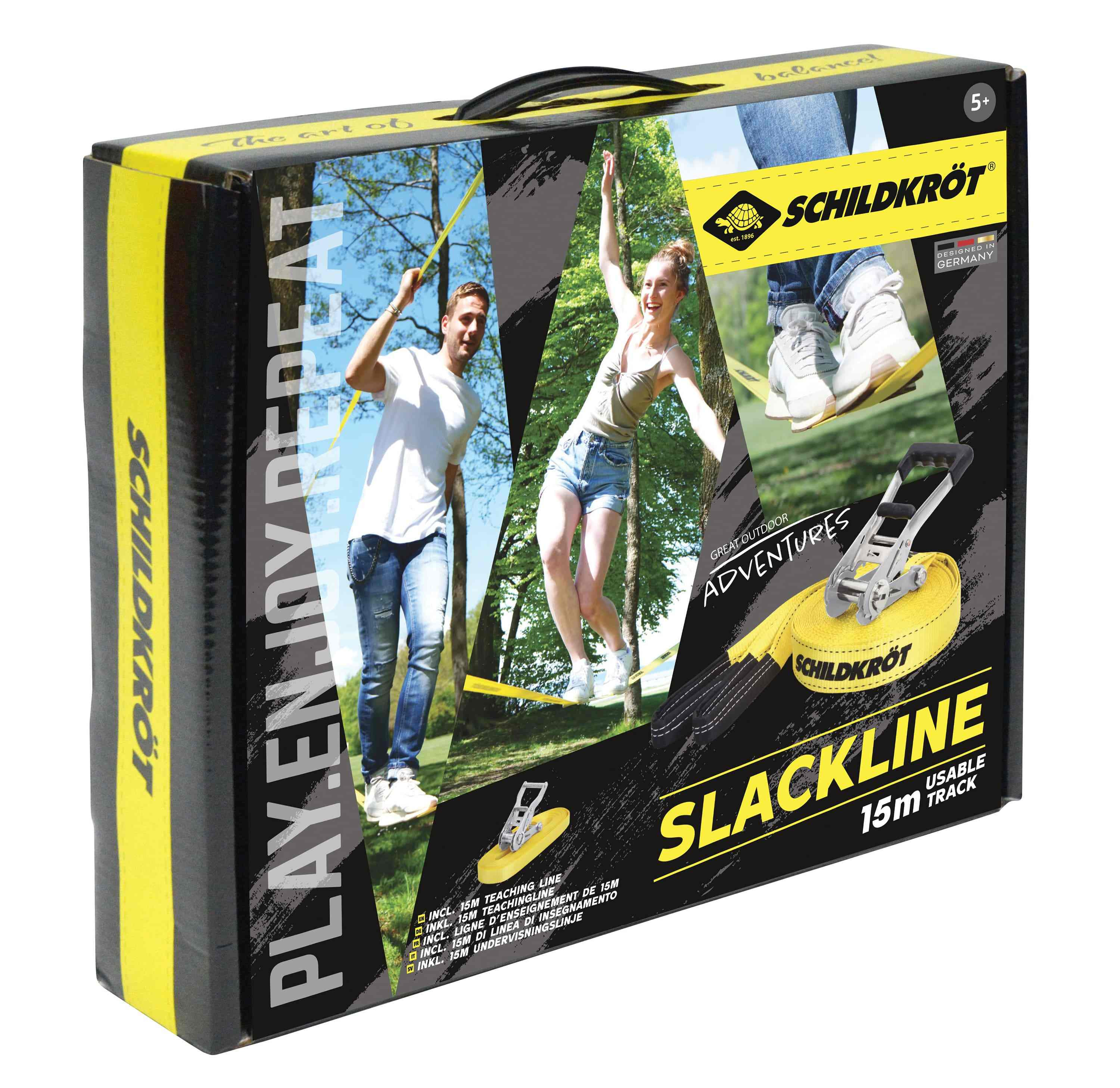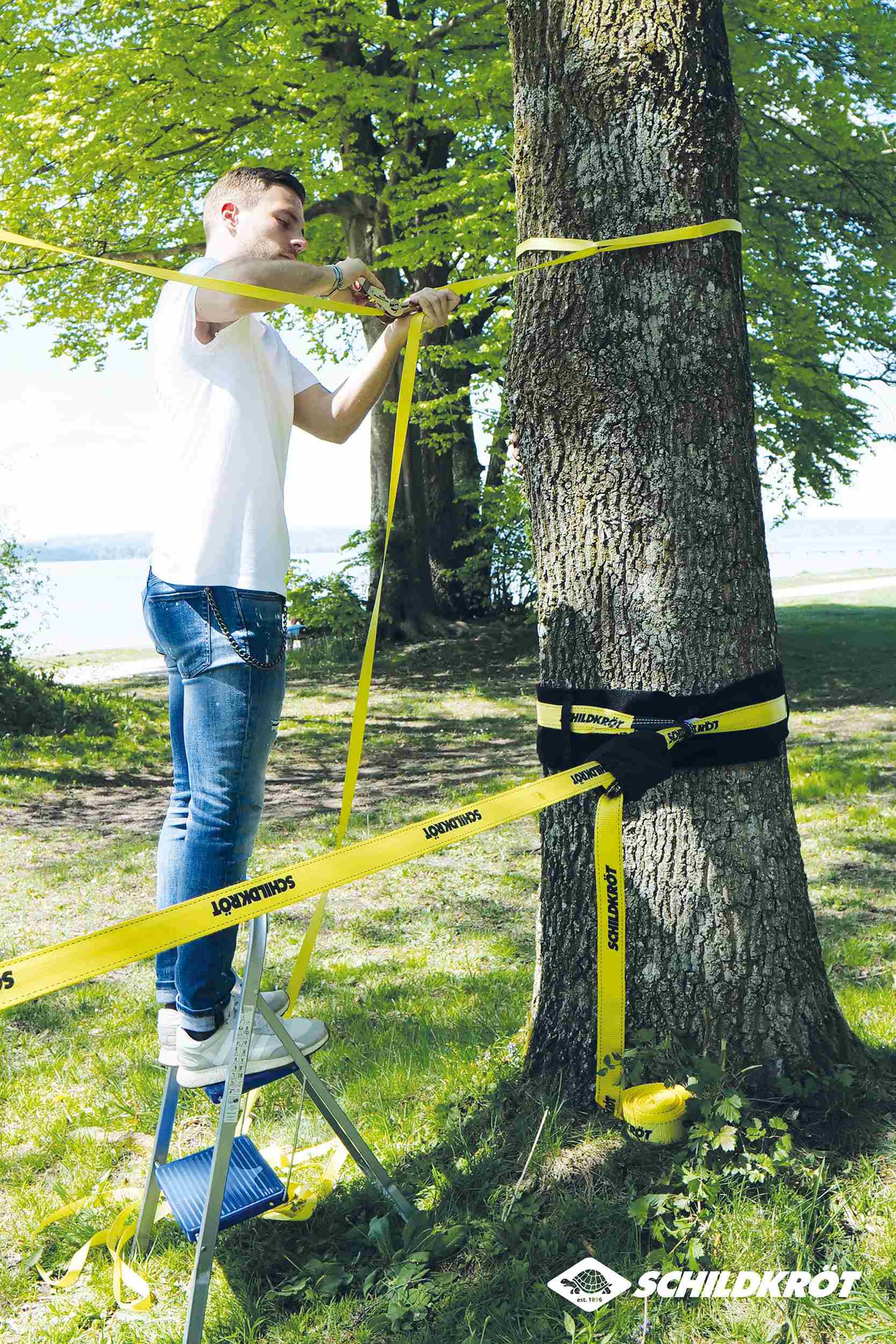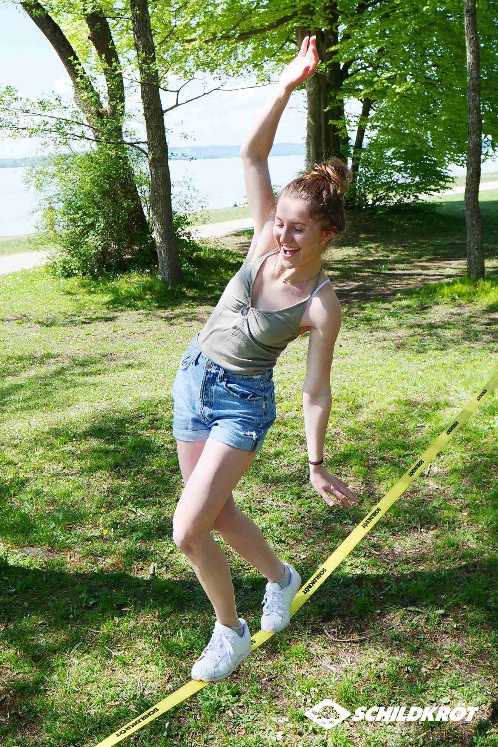 Slackline Schildkröt je ideální pro děti, teenagery i dospělé. Přiložená cvičná lana zajišťuje rychlou zábavu i pro začátečníky.