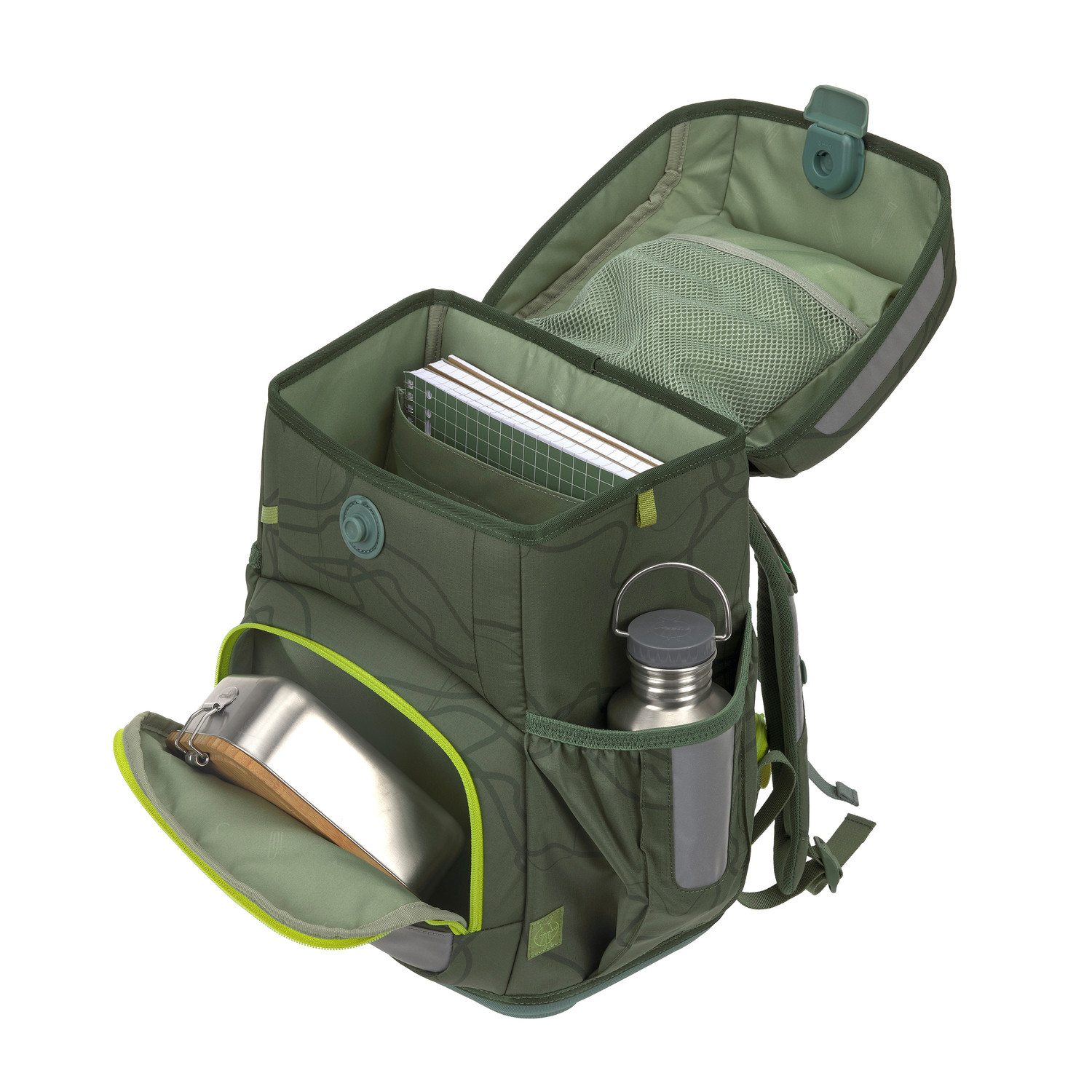 - chytré uchycení sportovního vaku ke školnímu batohu umožňuje plné otevření batohu