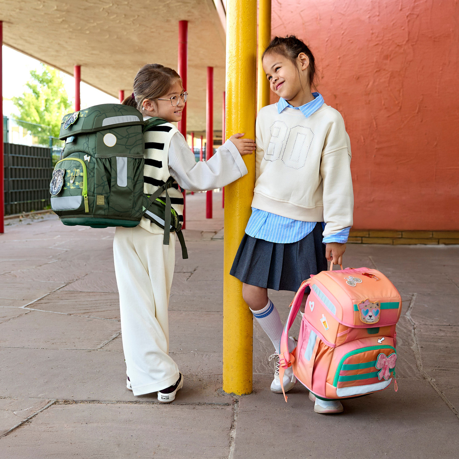 Praktický školní set obsahuje: školní aktovku, sportovní vak, velký vybavený penál, malý penál se zipem, pláštěnku a sadu skládající se ze 2 nášivek určených k ozdobení setu. Veškeré příslušenství je opatřené poutky, na které lze připevnit nášivky, které jsou součástí setu, či další drobnosti dle fantazie dítěte.