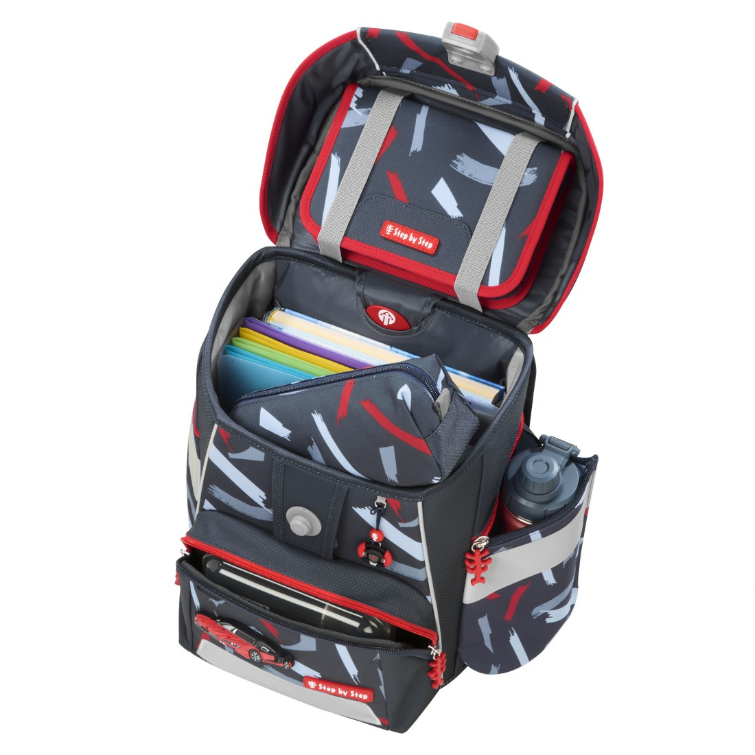 Prostorná aktovka, do které se vejde vše potřebné od pera až po sportovní potřeby. 5dílný set obsahuje školní aktovku, vybavený penál, pouzdro, sportovní pytel, vyměnitelné obrázky MAGIC MAGS. Prostorná ergonomická aktovka s objemem 20 l a pohodlný společník, který chrání záda malých školáků při cestách do školy. Kvalitní a přehledná jednokomorová aktovka je ideální od 1. do 4. třídy ZŠ pro všechny školáky od 100 do 150 cm výšky. Aktovka s dětmi poroste a vždy perfektně padne. Díky dokonalé ergonomii získala aktovka uznávaný německý certifikát AGR.