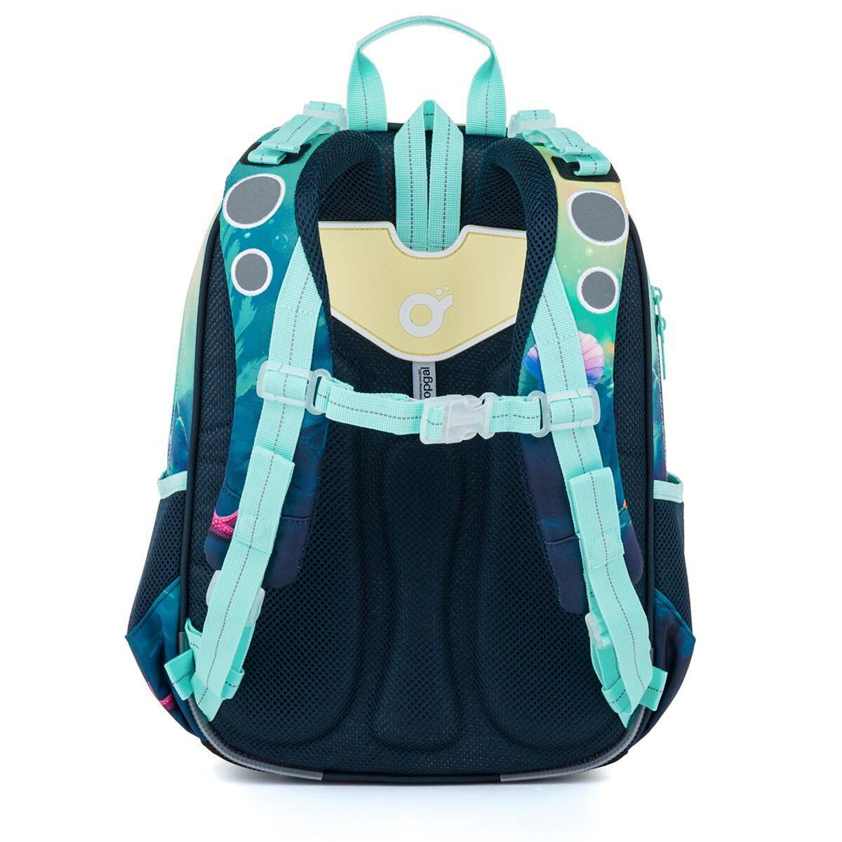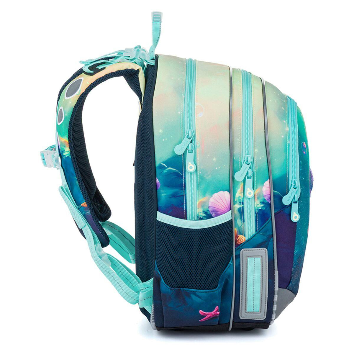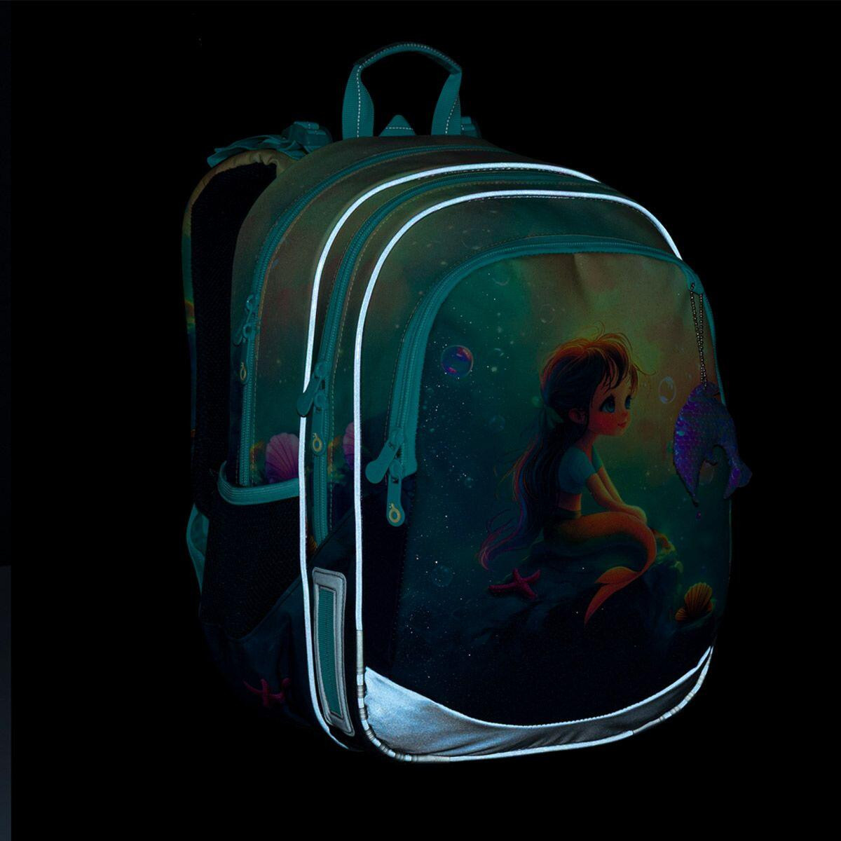 Školní batoh ELLY je vhodný pro slečny s výškou od 115 cm od první až do čtvrté třídy ZŠ. Pohádkový motiv mořské víly v jemných tyrkysových a pastelových tónech vnese do každého školního dne kousek fantazie a kouzelného světa pod hladinou.