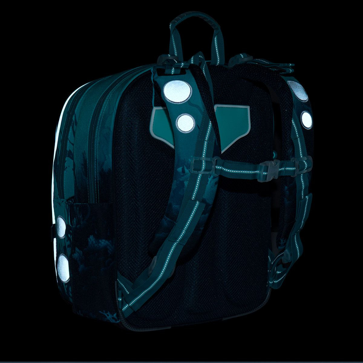 Spodní část batohu chrání pevné plastové nožky, díky kterým batoh výborně stojí a zůstává stabilní i při každodenním používání. Samozřejmostí jsou reflexní prvky na čele, bocích i ramenních popruzích, které zvyšují bezpečnost dítěte na cestě do školy i ze školy.