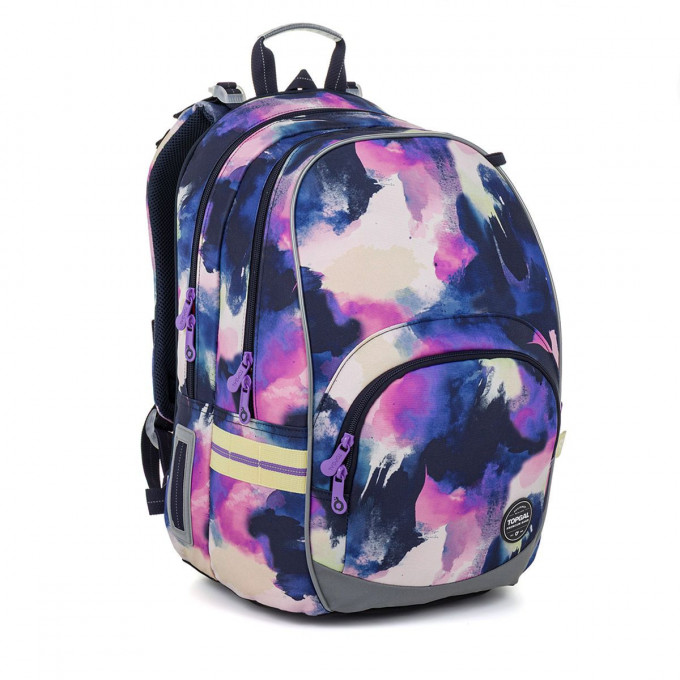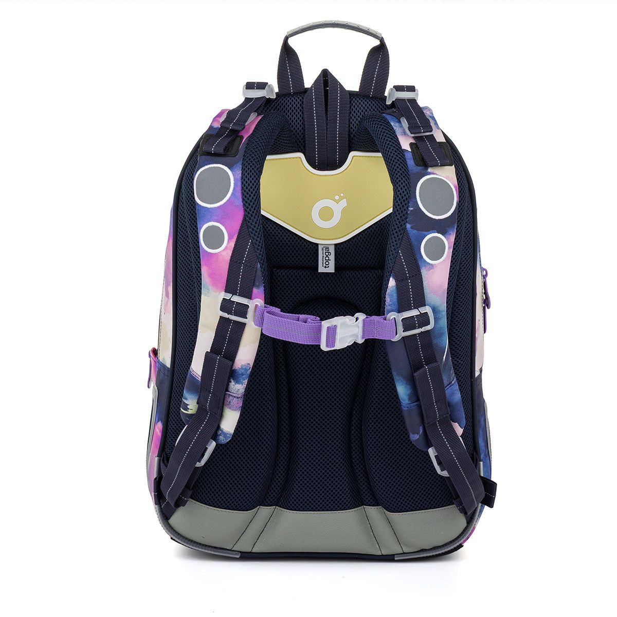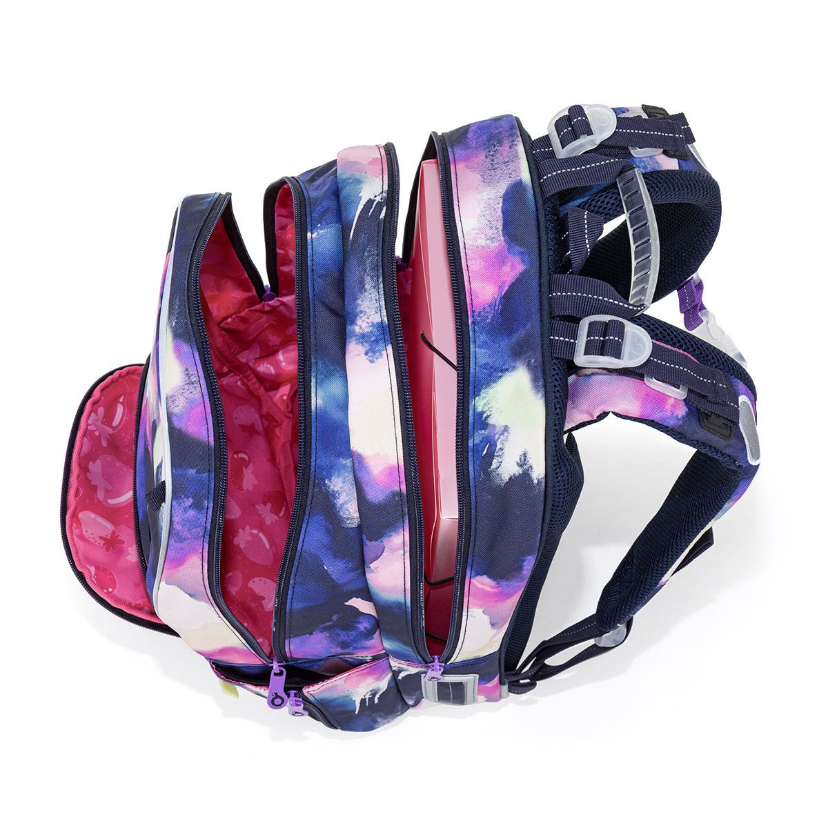 Moderní a lehký školní batoh navržený pro školačky od 2. do 5. třídy. Jemný akvarelový motiv v pastelových barvách působí elegantně a nadčasově, takže batoh bude děti bavit i několik školních let. Batoh je vybaven ergonomicky tvarovanými zády a měkce polstrovanými ramenními popruhy, které se snadno přizpůsobí postavě dítěte. Výškově nastavitelná hrudní přezka pomáhá udržet batoh správně usazený na zádech a zvyšuje pohodlí při nošení.