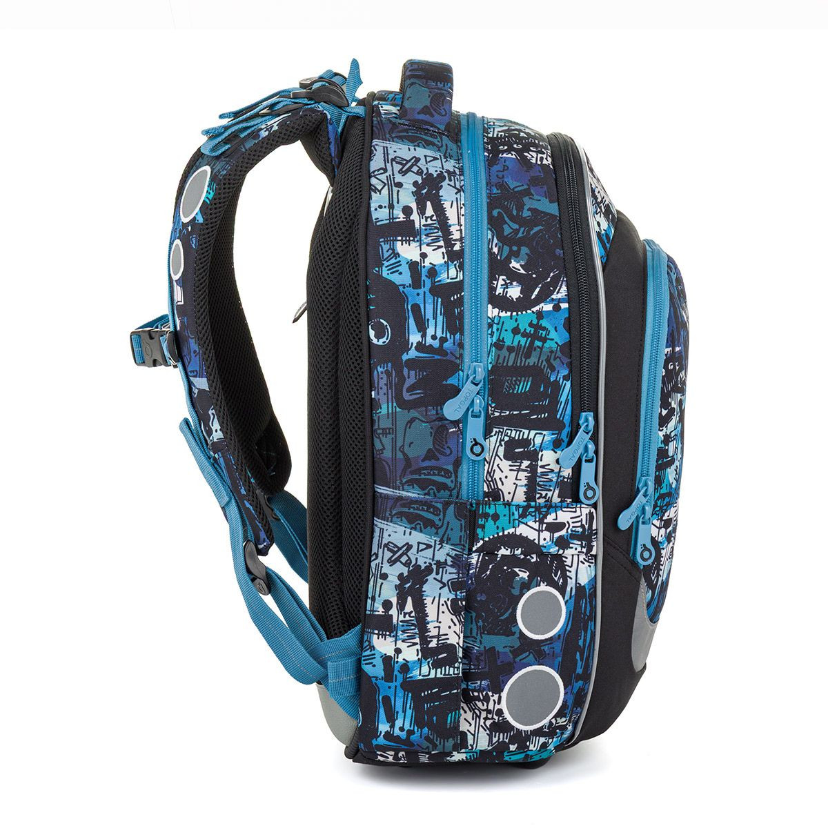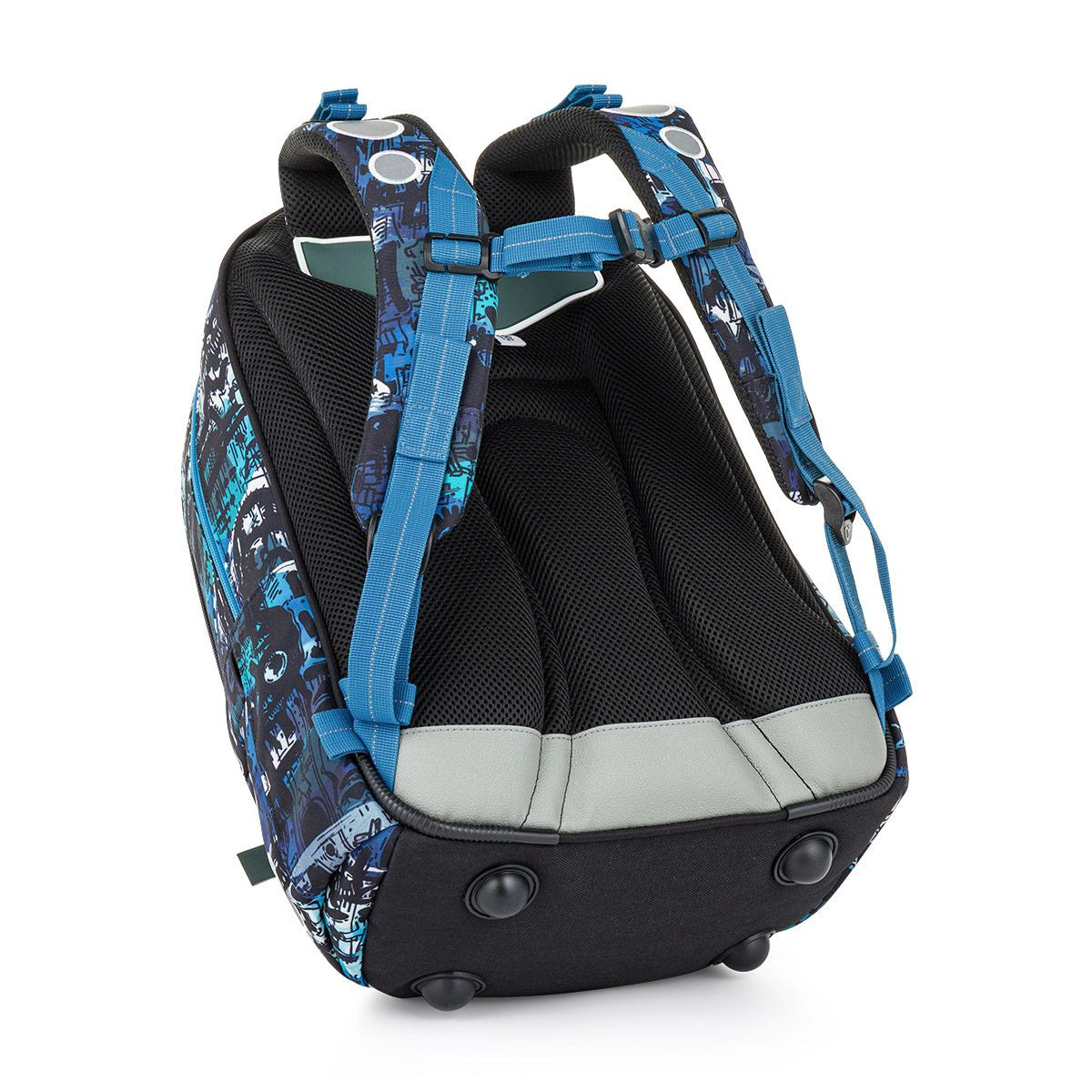 Lehký a praktický školní batoh pro školačky od 125 cm. Díky svému objemu 27 litrů i konstrukci bez problémů vydrží až do 6. třídy. Výrazný streetový motiv v modro-černých tónech osloví děti, které chtějí moderní a funkční batoh na několik školních let. Batoh má ergonomicky tvarovaná záda a měkce polstrované ramenní popruhy, které se snadno přizpůsobí rostoucí postavě dítěte. Výškově nastavitelná hrudní přezka pomáhá udržet batoh stabilně na zádech a zvyšuje pohodlí při každodenním nošení.