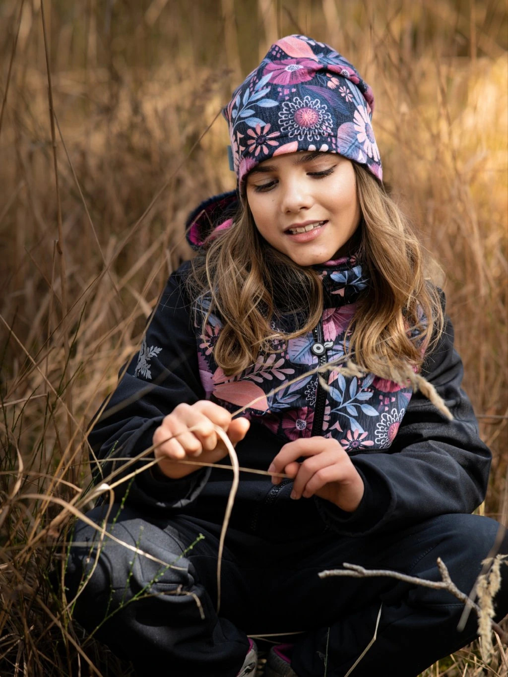 Softshellová bunda s fleecem je nepostradatelný parťák na každé jaro a podzim. Kouzelný potisk velkých květin promění každé dětské dobrodružství v barevnou výpravu. Kombinace zatepleného softshellu s fleecem a prodyšnou membránou poskytuje komfort od září do března a udrží děti v suchu i teple.