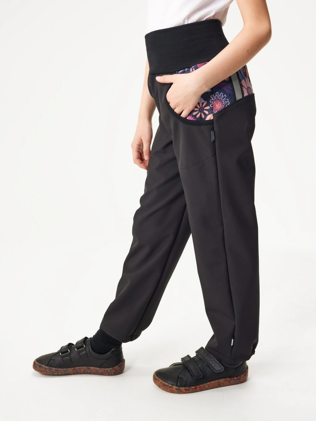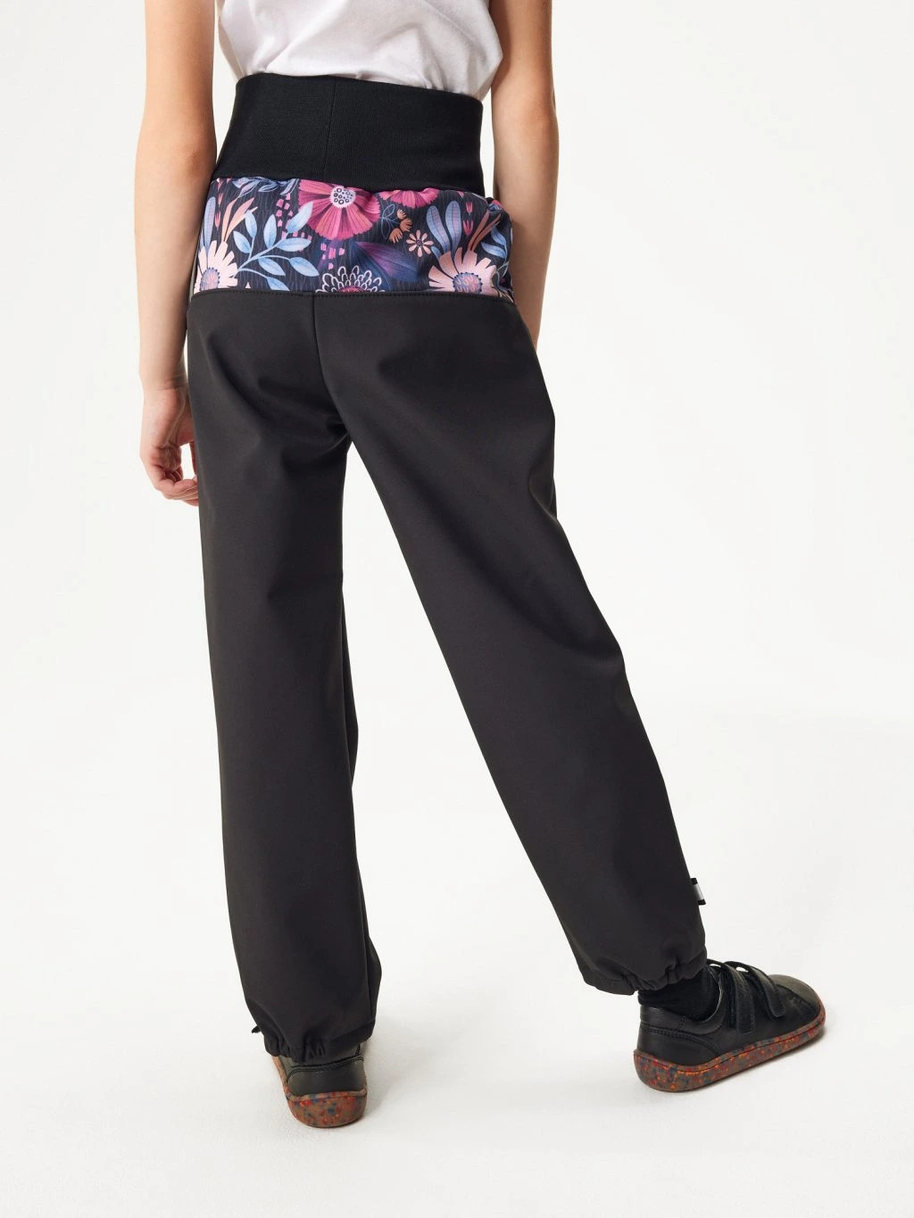 Když se počasí začne lámat a děti potřebují oblečení, které vydrží vítr, déšť i první mrazíky, nastává chvíle pro softshellové kalhoty, které si poradí se vším. Tento model s jemným potiskem fialovorůžových kytiček u kapes a na zadním díle si získá srdce všech malých dobrodružek. Kombinace zatepleného softshellu s fleecem a prodyšnou membránou chrání před chladem a vlhkostí, zároveň ale zůstává dostatečně pohodlná i pro každodenní nošení.