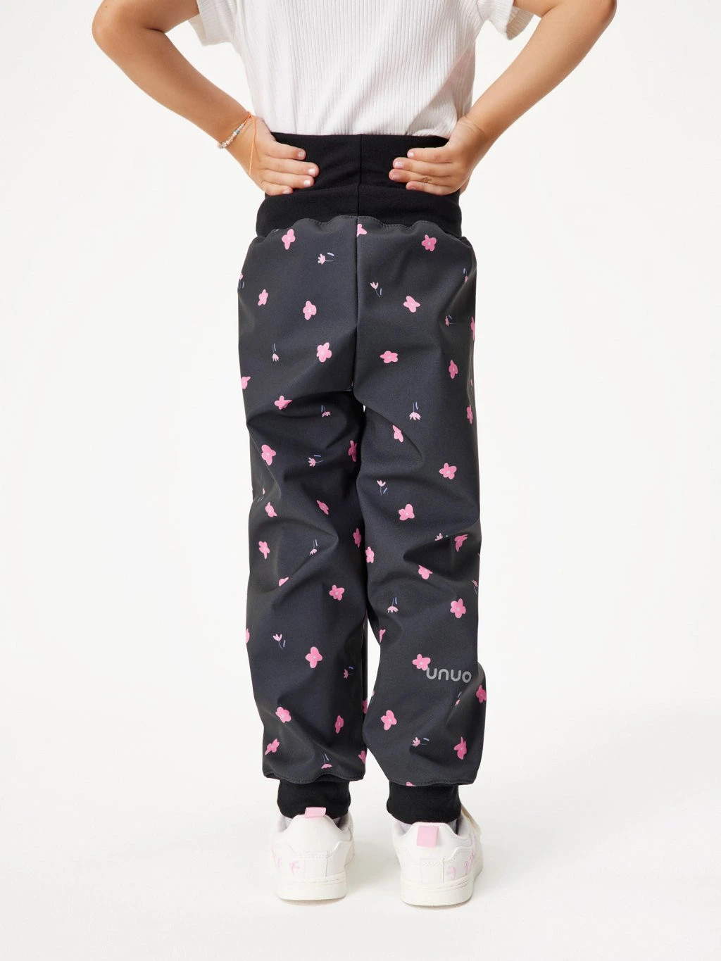 Elegantní, funkční a pohodlné – přesně takové jsou tyto dívčí softshellové kalhoty s jemným potiskem drobných růžových květů na černém podkladu. Kombinace zatepleného softshellu s fleecem a prodyšnou membránou zaručí, že vaše dítě zůstane v teple a suchu i při podzimním větru nebo jarním dešti. Tyto kalhoty jsou ideálním společníkem od září až do března, kdy počasí neustále zkouší, co všechno vydržíte.