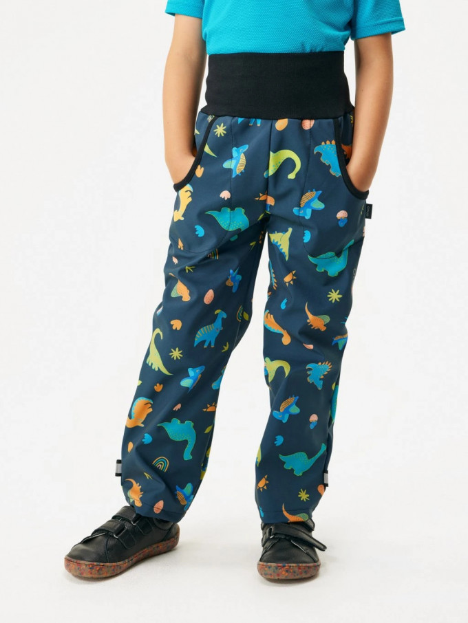 Pro malé objevitele, kteří se nezaleknou žádného terénu, jsou tu kobaltové softshellové kalhoty s potiskem dinosaurů. Kombinace zatepleného softshellu s fleecem a prodyšnou membránou chrání před chladem, vlhkem i větrem, takže se děti mohou vydat za dobrodružstvím v jakémkoli počasí. Kalhoty jsou spolehlivým parťákem od září až do března – ideální pro školní výpravy, hřiště i víkendové výlety do přírody.
