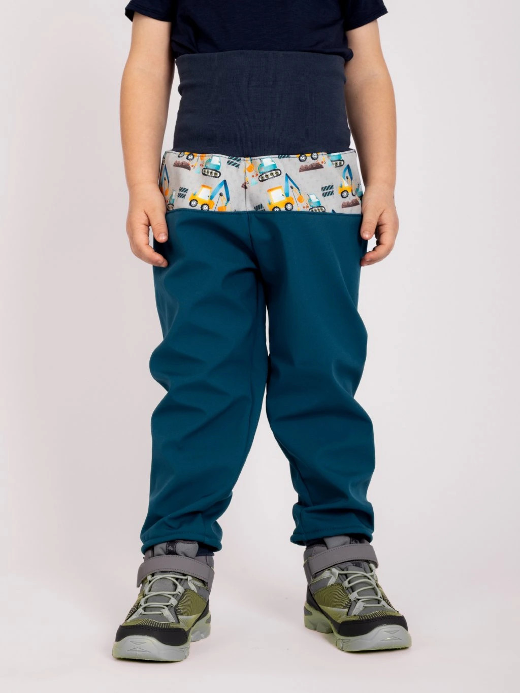 Softshellové kalhoty od Unuo zvládnou bláto, vítr i chladné podzimní dny. Kobaltově modrá barva s potiskem bagrů u kapes a nad zadním dílem potěší všechny malé stavitele, kteří milují velké stroje a ještě větší dobrodružství. Kombinace zatepleného softshellu s fleecem a prodyšnou membránou zaručuje teplo, sucho a pohodlí při každém pohybu. Tyto kalhoty budou spolehlivým parťákem od září až do března – ideální na cesty do školky, na hřiště i víkendové výpravy ven.