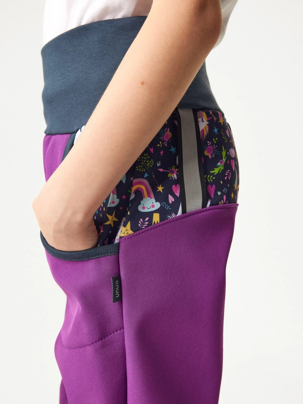 Softshellové kalhoty s fleecem Basic, Ostružinová, Jednorožci - vel. 104/110
