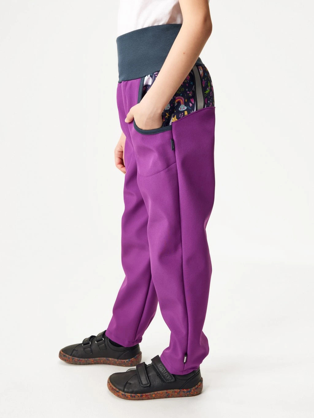 Pro všechny malé snílky, kteří milují pohyb, dobrodružství a kapku kouzla, jsou tu ostružinové softshellové kalhoty s jemným potiskem jednorožců u kapes a na zadním díle. Zateplený softshell s fleecem a prodyšnou membránou spolehlivě ochrání před větrem, chladem i lehkým deštěm, takže si děti mohou užívat hry venku, aniž by musely myslet na počasí. Tyto kalhoty se rychle stanou nepostradatelnou součástí šatníku od prvních podzimních dnů až do jara.