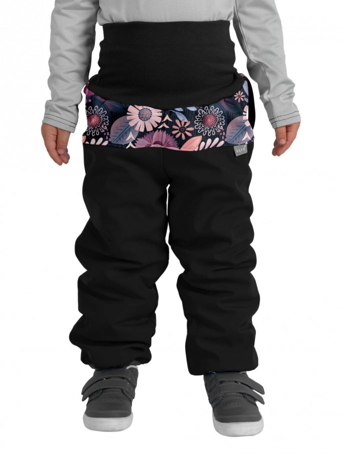 Softshellové oteplovačky s beránkem Plus, Černá, Kouzelné květiny - vel. 86/92
