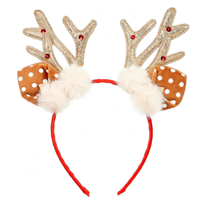 Vánoční čelenka pro malé slečny od 3 let je potažená červenou stuhou a zdobená sobími parůžky a oušky. Čelenka je lehká, jemná a příjemná na nošení (má optimální šířku 1 cm a netlačí). Skvěle doplní účes každé malé parádnice. Ideální doplněk pro adventní období, vánoční večírky i slavnostní rodinné chvíle.