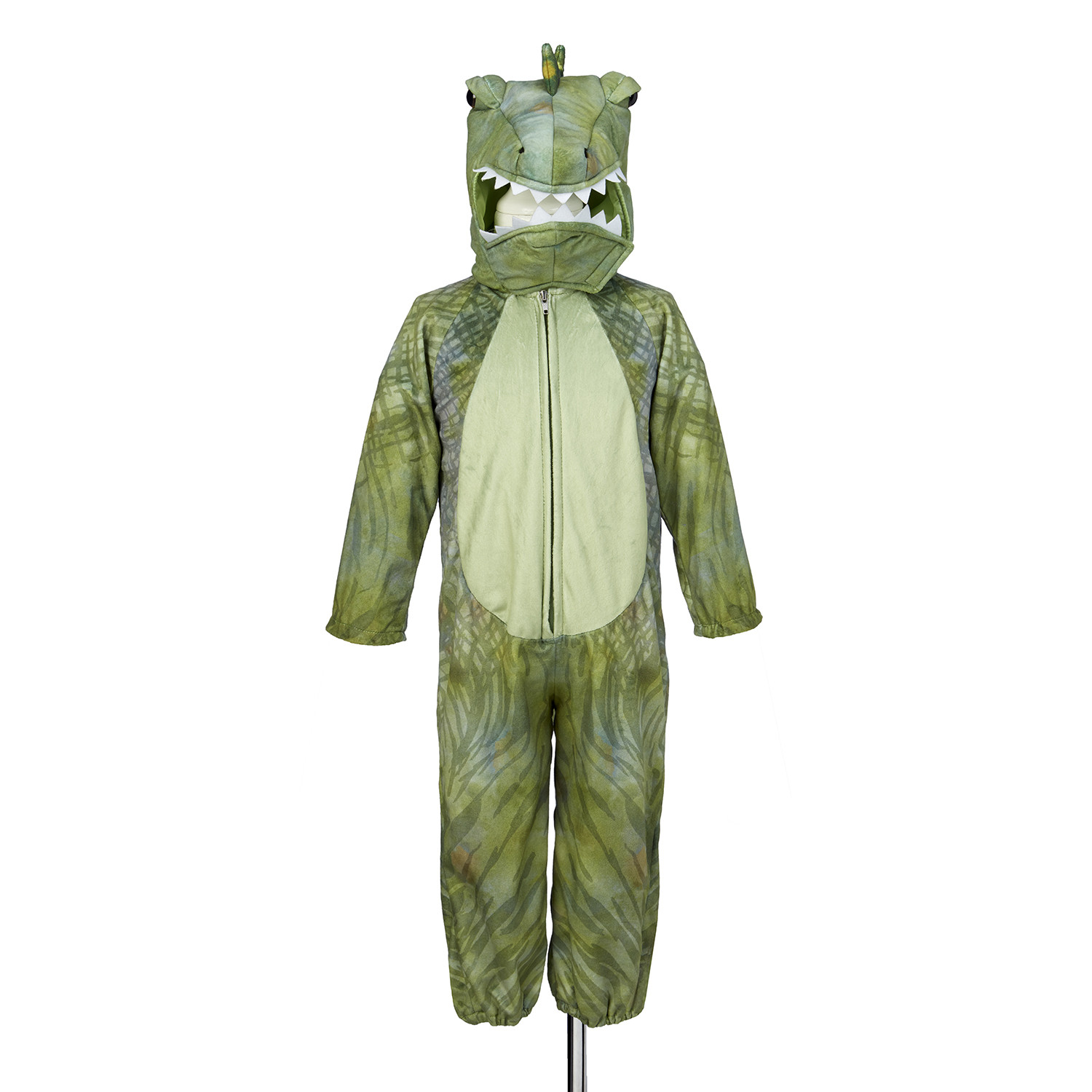 Krásný kostým pro malého dobrodruha. V tomhle kostýmu se každý kluk promění ve skutečného T-rexe! Overal je pohodlný, měkoučký a navržený tak, aby z něj děti měly radost a cítily se v něm dobře. Kostým má kapuci s dinosauří hlavou, která každého zaujme. Nechybí výrazné oči, zadní část doplňuje velký plazí ocas. Celý overal je potištěný tak, aby připomínal opravdovou dinosauří kůži se spoustu barev a detailů.