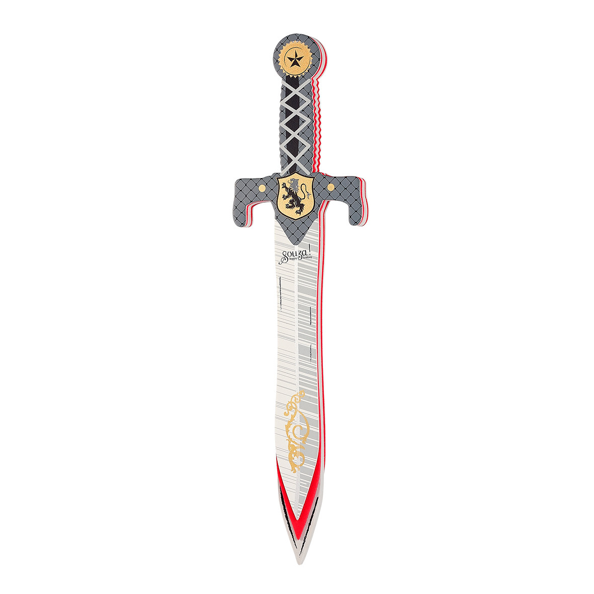 Tento rytířský meč je vyroben z lehké a odolné pěny EVA, což zajišťuje bezpečné hraní i snadné zacházení pro děti od 3 let. Meč zdobí černý erb mytického stvoření gryfa. Má dobře tvarovanou rukojeť, která padne dětem do ruky. Díky své lehkosti je ideální pro malé rytíře na dobrodružné výpravy.