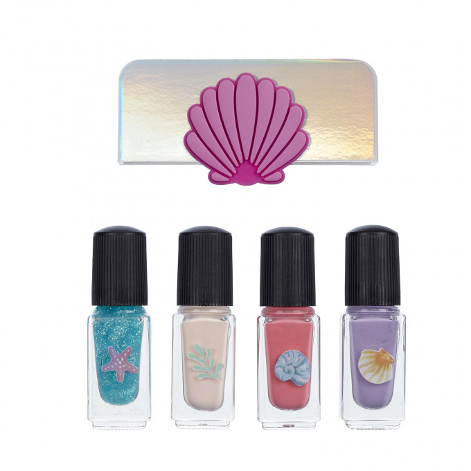 Sada laků na nehty, díky kterým se budou dětské nehty jemně třpytit jako perly. Součástí balení je držák, který drží všechny laky pohromadě, zabraňuje jejich ztrátě a usnadňuje skladování. Tato barevná sada je navržena speciálně pro bezpečnou úpravu nehtů u nejmenších dětí od 3 let. Balení obsahuje čtyři laky v krásných jemných barvách, včetně jednoho třpytivého.