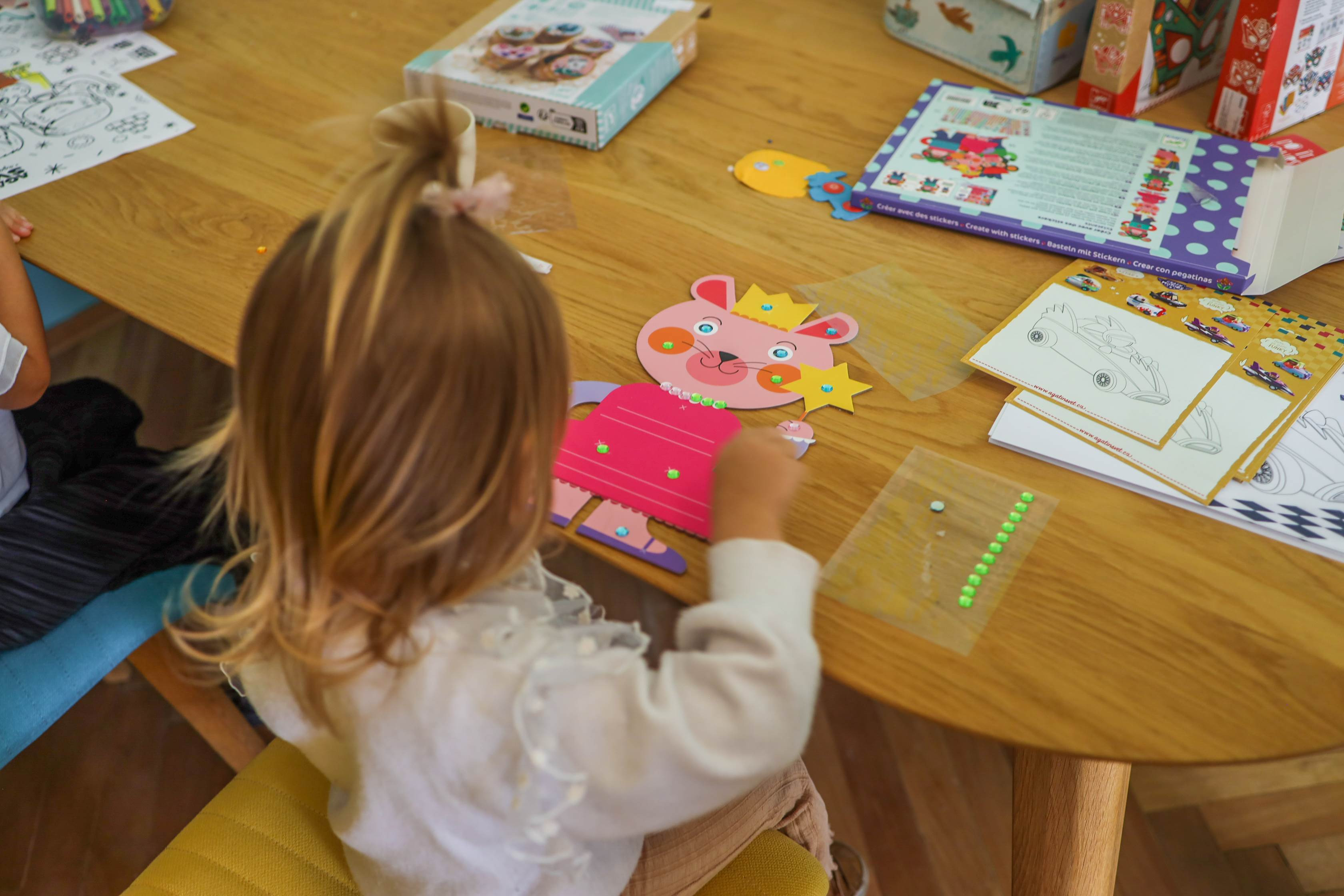 Jde o jednodušší tvoření, které zvládnou i menší děti. Tvoříme převážně z našich dostupných kreativních sad a využíváme naše výtvarné potřeby. Hotový výtvor si děti odnášejí domů. V Agátiných kreativních dílničkách tvoří primárně děti, ale rodiče na své děti dohlíží a dle potřeby pomáhají.