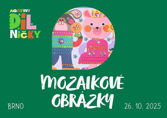 Zveme vás do Agátiny kreativní dílničky. Přijďte si dotvořit postavičku zvířátka za pomoci propojených kamínků. Kamínky rozzáří zvířátka a hotové dílko zase rozzáří dětské oči. Hotové obrázky se budou krásně vyjímat na poličce dětského pokoje.