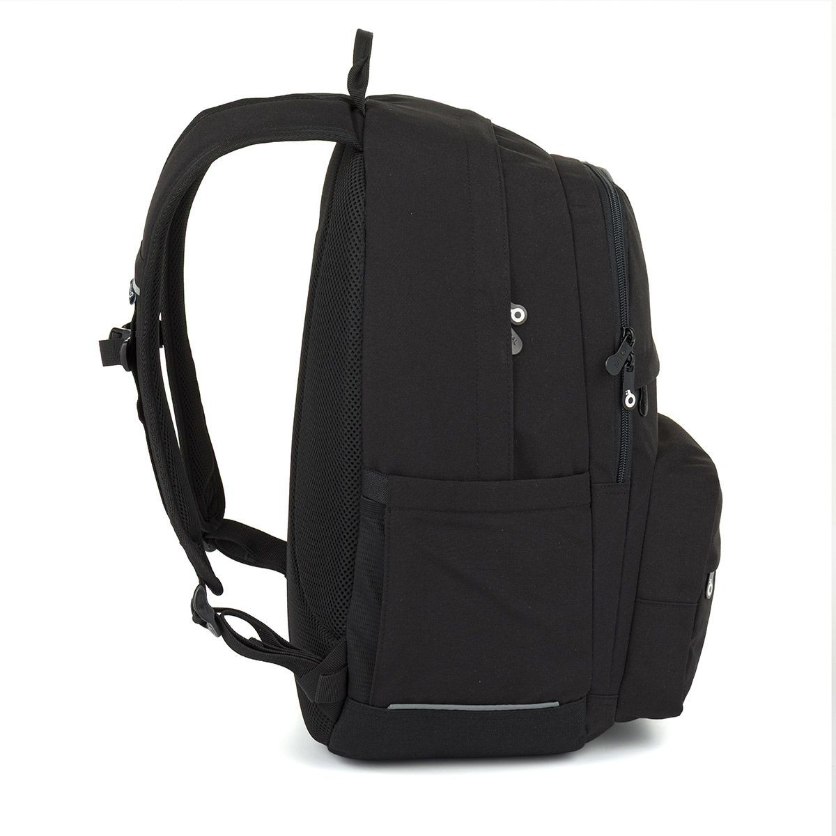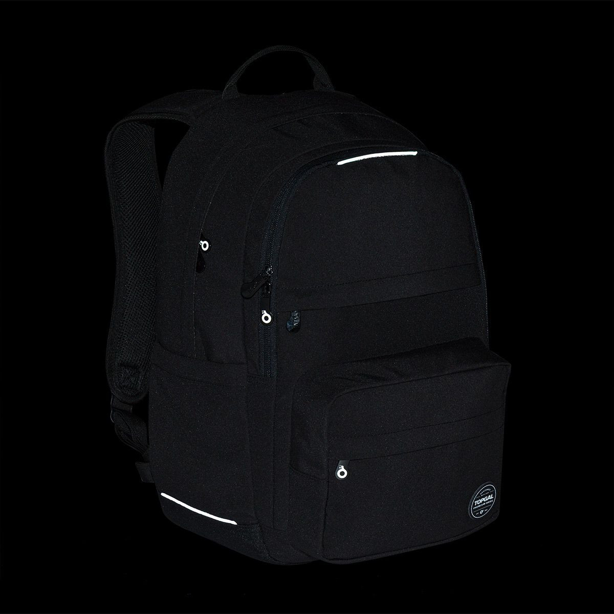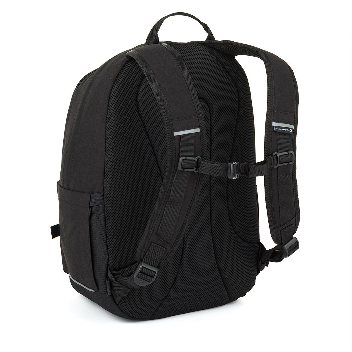 Kromě dvou hlavních komor má batoh dvě přední kapsy, do kterých se krásně vejde pouzdro na psací potřeby nebo svačinový box. Do přední kapsy jsme umístili praktickou síťovanou kapsičku na doklady a poutko na klíče. Po obou stranách batohu najdete hluboké kapsy na lahev s pitím. Reflexní prvky jsou decentně zakomponovány tak, aby nenarušovaly čistý vzhled batohu, ale zajistily vaši bezpečnost.