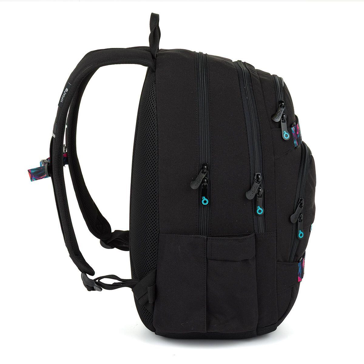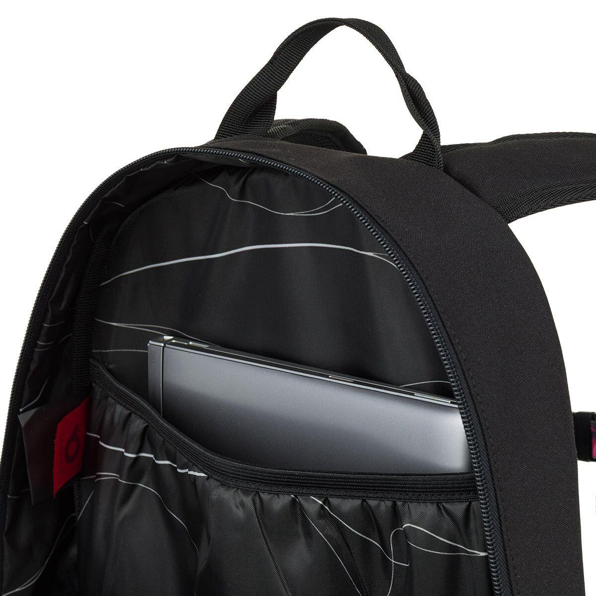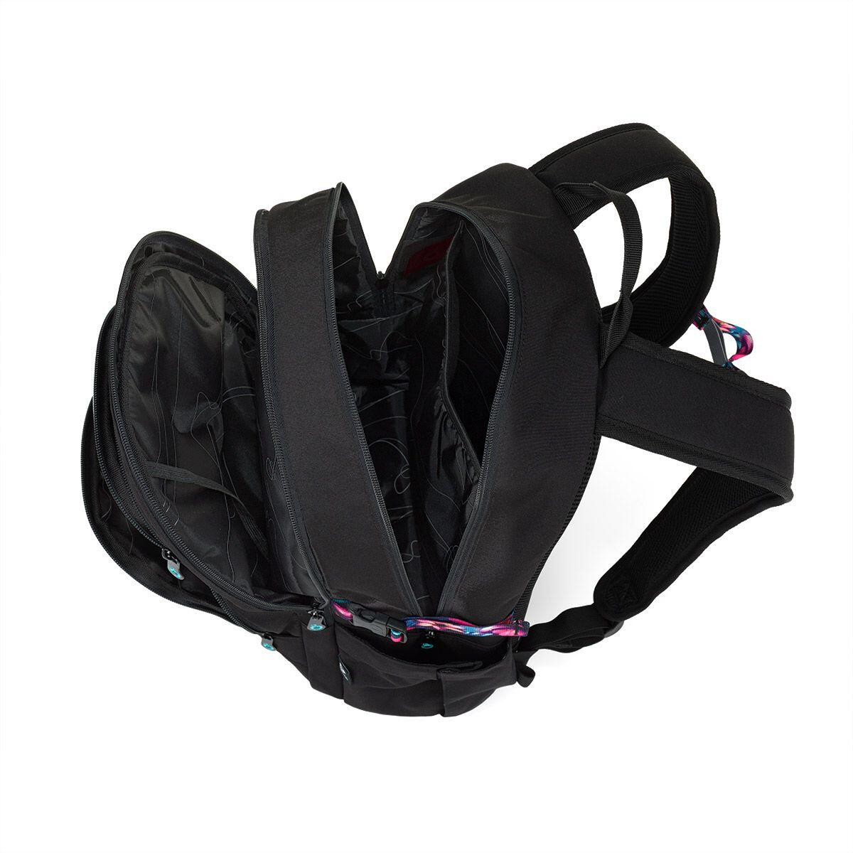 Uvnitř najdeš dostatek prostoru pro všechny školní potřeby – dvě hlavní kapsy doplněné o přední kapsy pomáhají udržet přehled i ve dnech, kdy si nesete opravdu hodně věcí. Nechybí ani měkce polstrovaná kapsa na notebook nebo tablet, takže batoh bez problémů zvládne i moderní školní výbavu.