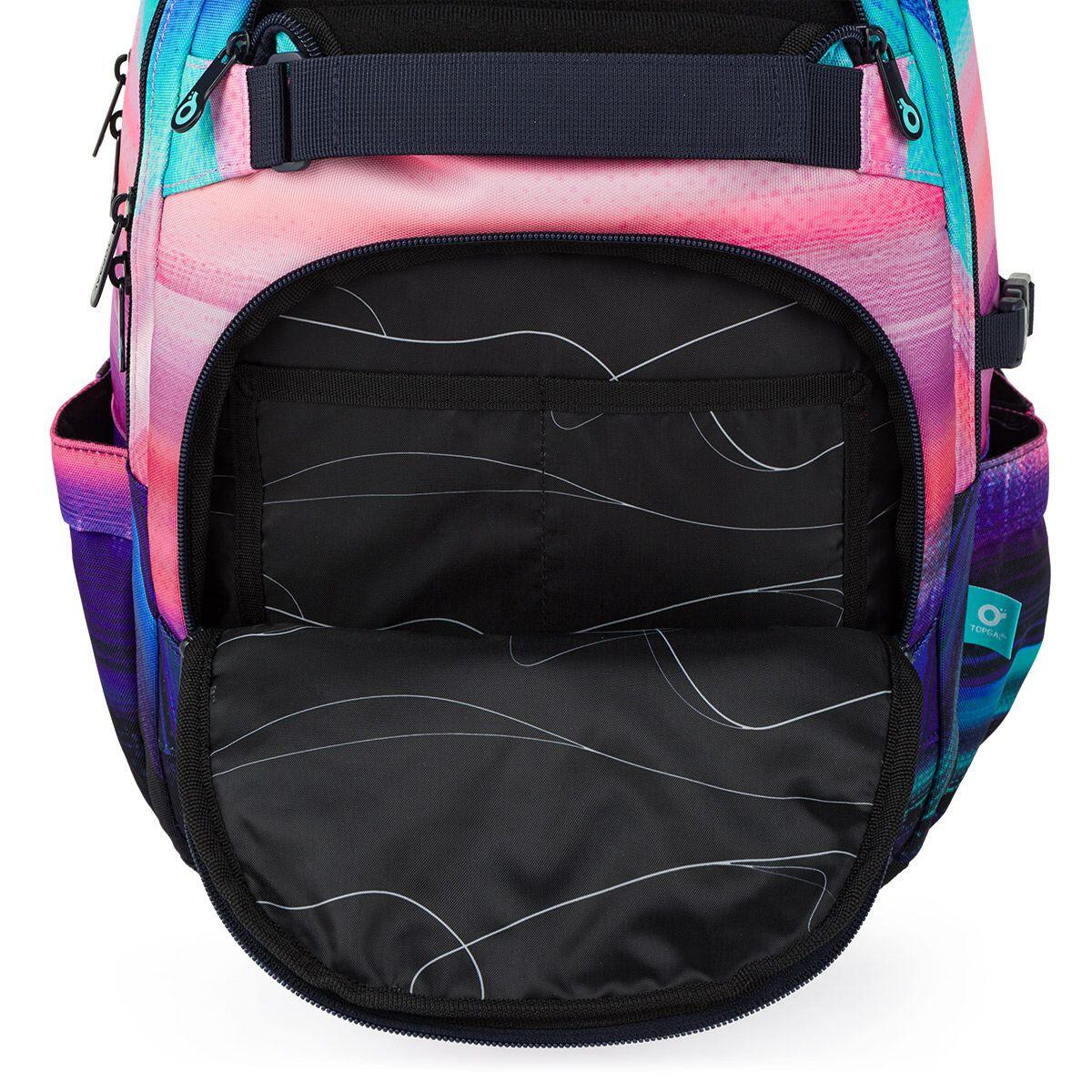 Studentský batoh Topgal VIKI zaujme na první pohled jemným barevným přechodem v dívčích odstínech, který působí moderně a zároveň hravě. Je ideální volbou pro školačky a studentky, které chtějí spojit styl s praktičností. Díky dvěma hlavním kapsám a několika menším kapsičkám má každá věc své místo – od učebnic až po drobnosti, které potřebujete mít denně po ruce.