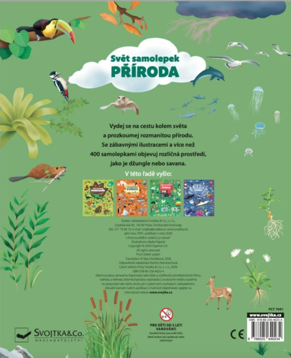 Samolepek je k dispozici více než 400 a děti je mohou lepit do připravených obrázků nebo si vytvářet vlastní příběhy. Díky tomu se ke knížce rády vrací a pokaždé ji prožijí trochu jinak. Knížka přirozeně propojuje hraní a učení. Děti si rozšiřují znalosti o přírodě, zároveň trénují soustředění i jemnou motoriku a učí se vnímat svět kolem sebe v širších souvislostech.