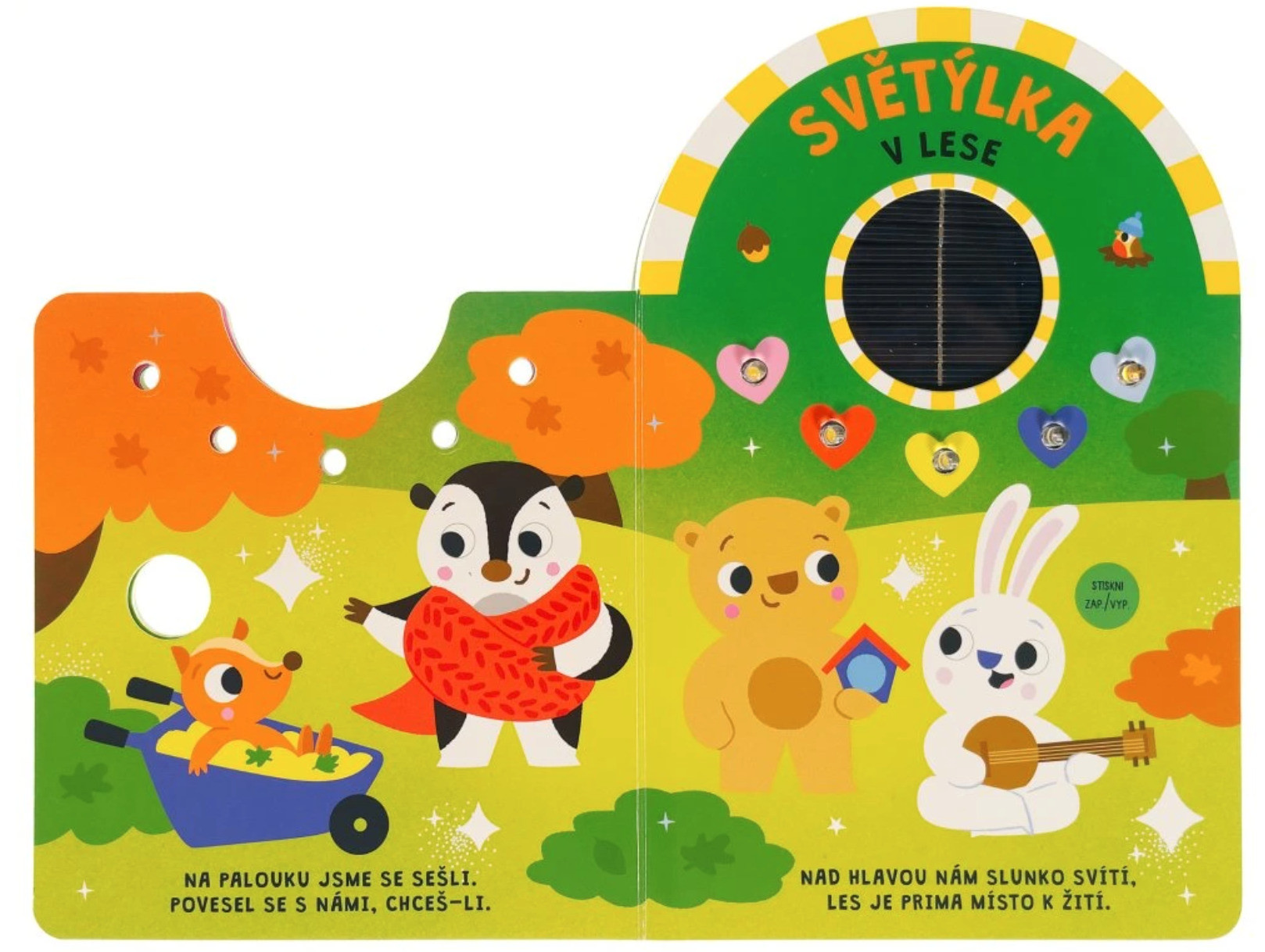 Knížka „Světýlka v lese“ zve děti na kouzelnou výpravu mezi lesní zvířátka, která ožívají díky jemným světelným efektům. Při listování děti objevují, kdo se ukrývá mezi stromy, a sledují, jak se les postupně rozzáří. Klidná atmosféra a krásné ilustrace přirozeně vtáhnou malé čtenáře do děje a podpoří jejich fantazii.