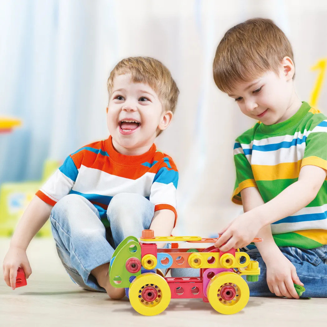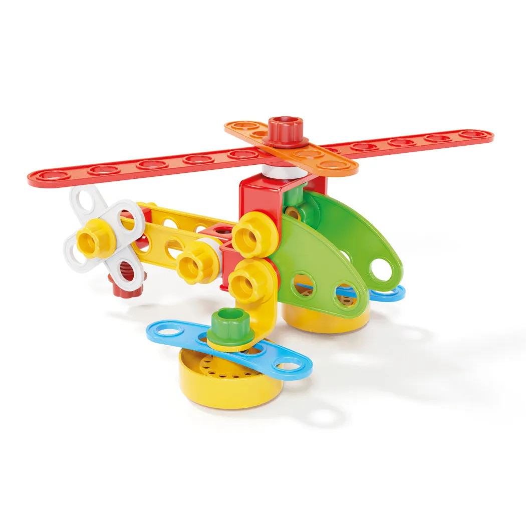 Šrouby, matice, křídlové matice, kola a perforované dílce z odolného, netříštivého plastu je možné sestavovat bez použití jakéhokoli nářadí. Děti od 3 let budou potřebovat jen své ruce a představivost. Tato sada totiž obsahuje všechno, co je nezbytné k sestrojení aut, helikoptér, jeřábů nebo dalších strojů, které dětem přijdou na mysl. Stavebnice Tecno Jumbo rozvíjí koordinaci, logické myšlení i tvořivost a zábavnou formou pomáhá dětem pochopit základní principy mechaniky.