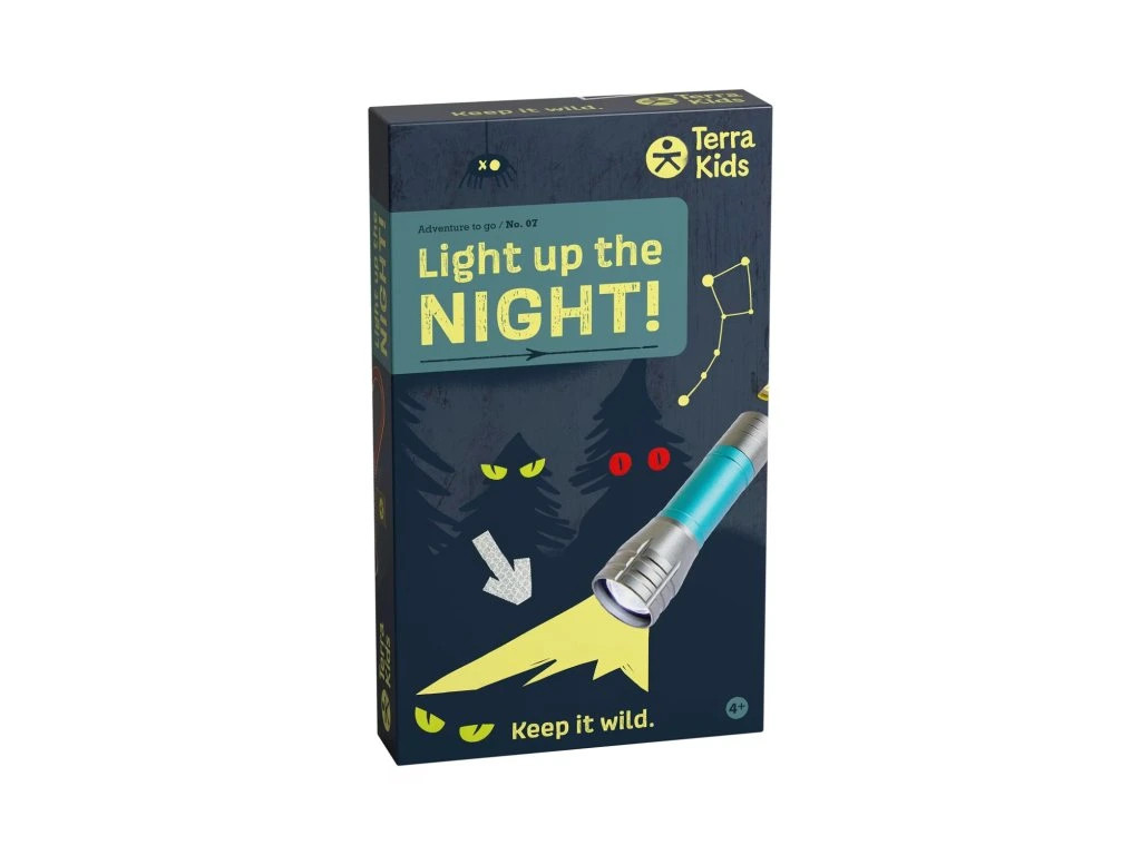 Balení obsahuje kapesní svítilnu odolnou vůči povětrnostním vlivům a 4 archy reflexních nálepek. Pomocí nálepek ve tvaru očí a šipek si můžete vytvořit vlastní světelný chodník, který ve tmě zazáří, když na něj zasvítí paprsek světla. Set je perfektní pro hledání stop a noční hry, které tmu promění na vzrušující hřiště plné objevování. Určeno pro děti od 4 let.