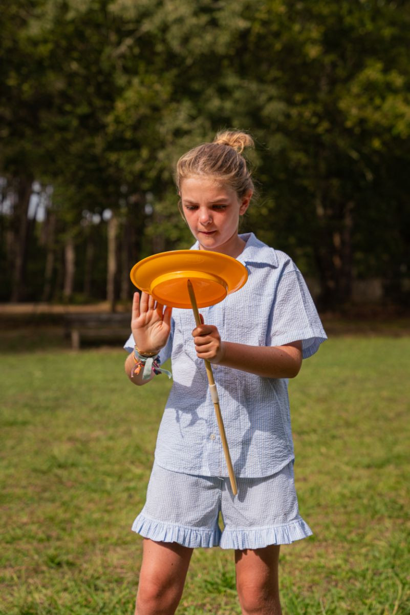 Zvládněte klasickou cirkusovou dovednost točení talířů na tyči! Tato hra pomáhá dětem procvičit si balancování a koordinaci pohybů. Děti si s touto hrou užijí spoustu zábavy a brzy se naučí otáčet talířem jako pravý cirkusový mistr!