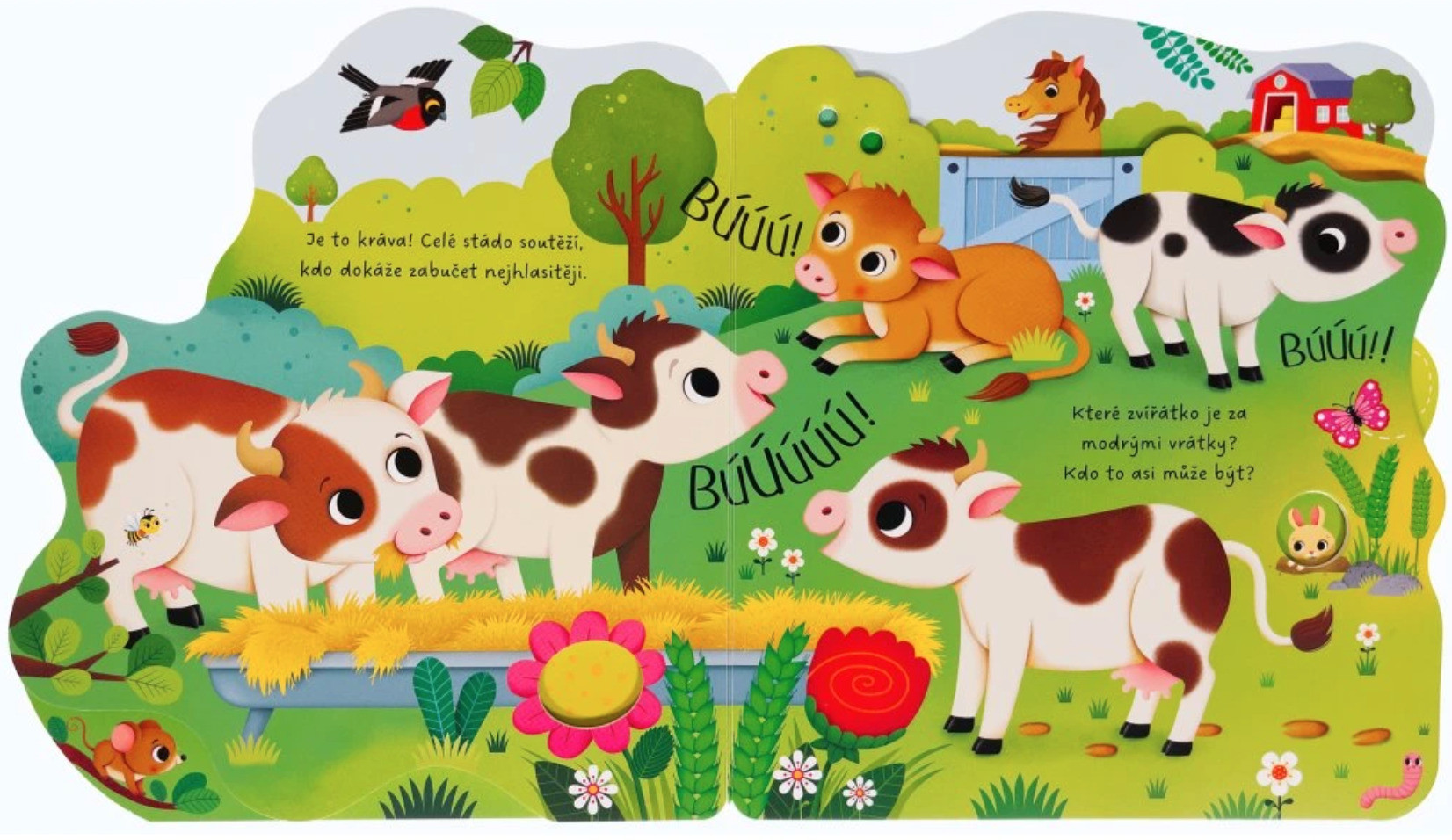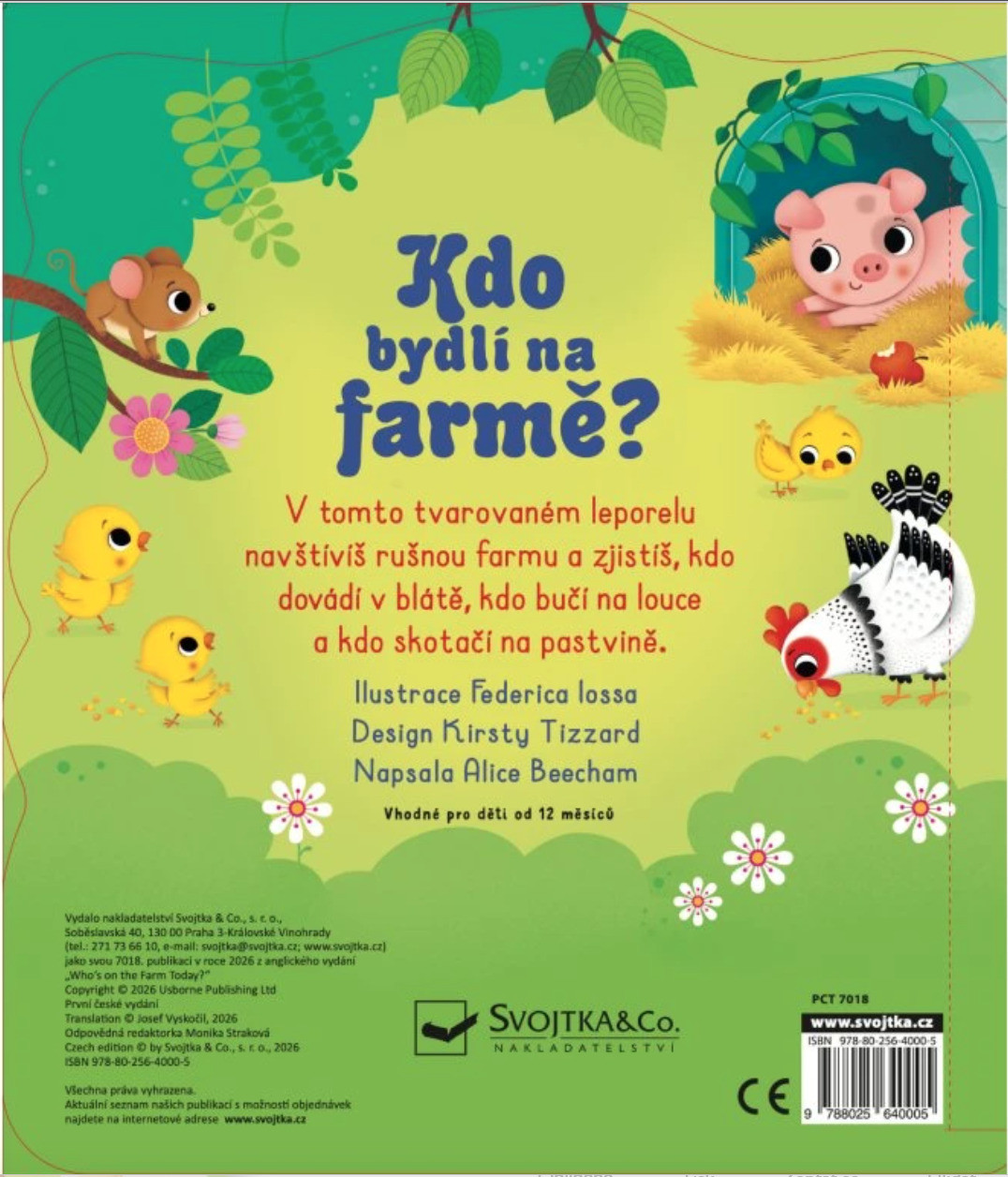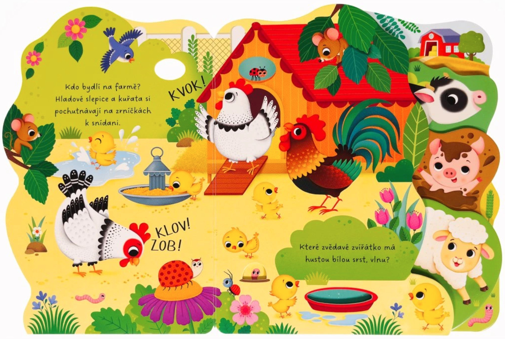 Leporelo „Kdo bydlí na farmě?“ vezme děti na hravou návštěvu mezi zvířátka, která dobře znají z každodenního života. Díky veselým ilustracím a nápaditě tvarovaným stránkám děti přirozeně objevují, kdo žije ve stáji, kdo na dvoře a kdo se ozývá z ohrady. Každé otočení stránky tak přináší nové malé překvapení.