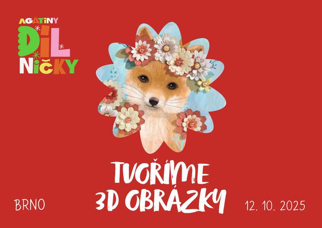 Zveme vás do Agátiny kreativní dílničky. Pojďte s dětmi vytvořit krásné efektní 3D obrázky. Hlavičky zvlířátek si děti dotvoří pomocí perleťových nýtků a papírových okvětních lístků. Vznikne tak krásné umělecké dílo.