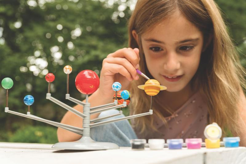 Vytvoření sluneční soustavy: jedna z aktivit umožňuje sestavit model naší sluneční soustavy. To dětem pomůže lépe si představit a zapamatovat si pořadí a velikosti planet.
