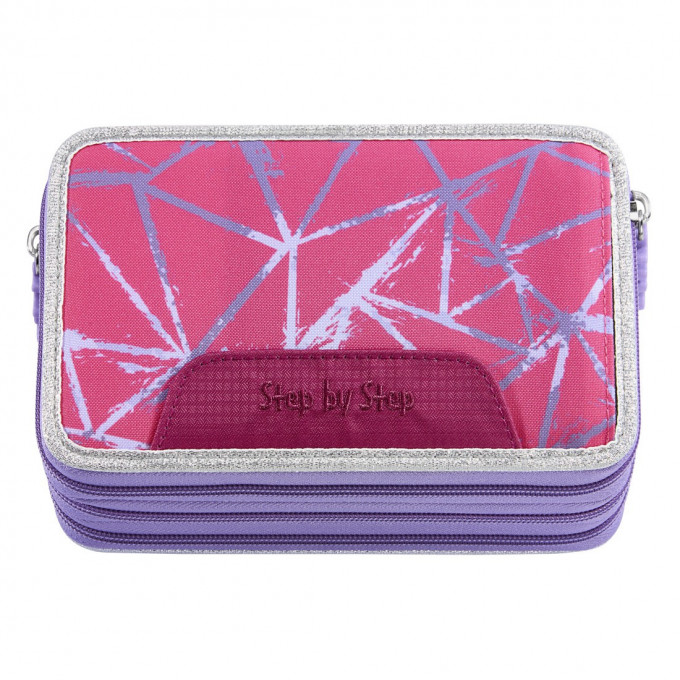 Třípatrový penál pro děti od 1. třídy ZŠ je plně vybaven značkovými psacími potřebami (43 kusů). Penál je uzavíratelný na zip. Uvnitř je malá průhledná kapsička na drobnosti uzavíratelná na suchý zip. Každou přihrádku lze otevřít zvlášť, což usnadňuje přístup k perům a dalším předmětům.