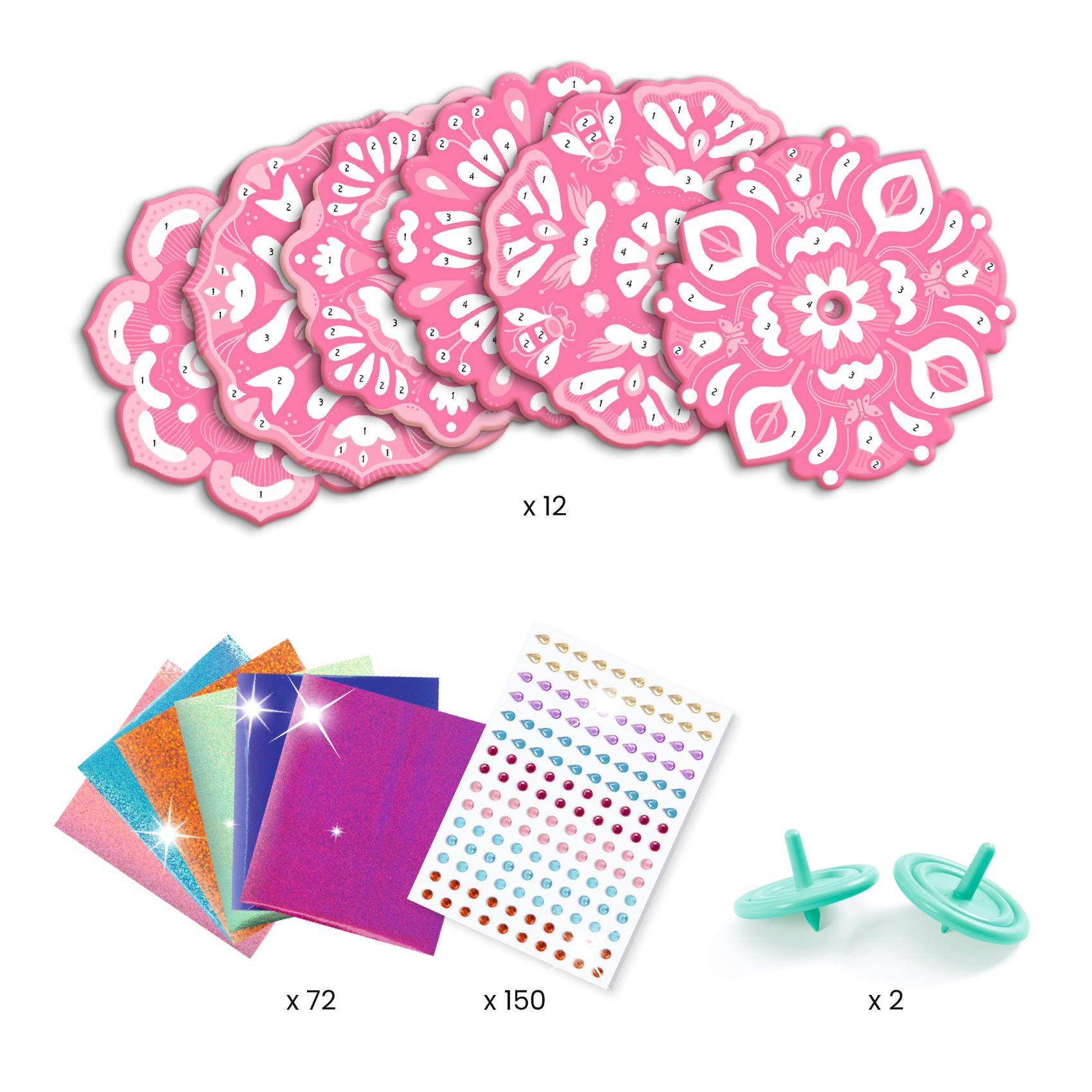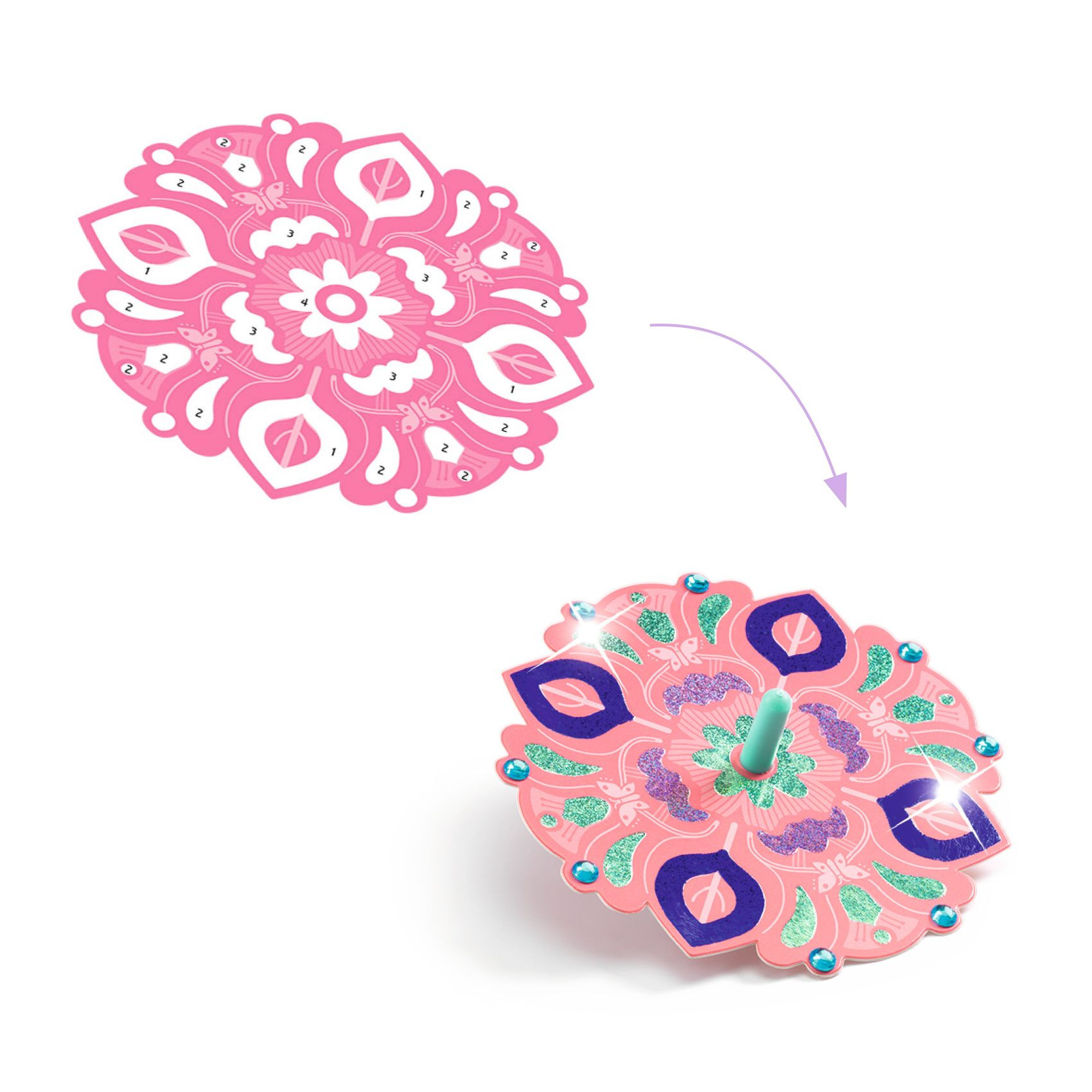 Zábavná kreativní sada pro děti od 6 let, se kterou si snadno vytvoří originální káči s květinovým motivem. Díky jednoduché technice lepení zvládnou tvoření i začátečníci. Pomocí barevných kódů na discích dítě najde místa, na které má přijít lesklá fólie. Nakonec si děti disky dozdobí třpytivými kamínky, poté stačí už jen roztočit káču a užít si její kouzelný efekt.