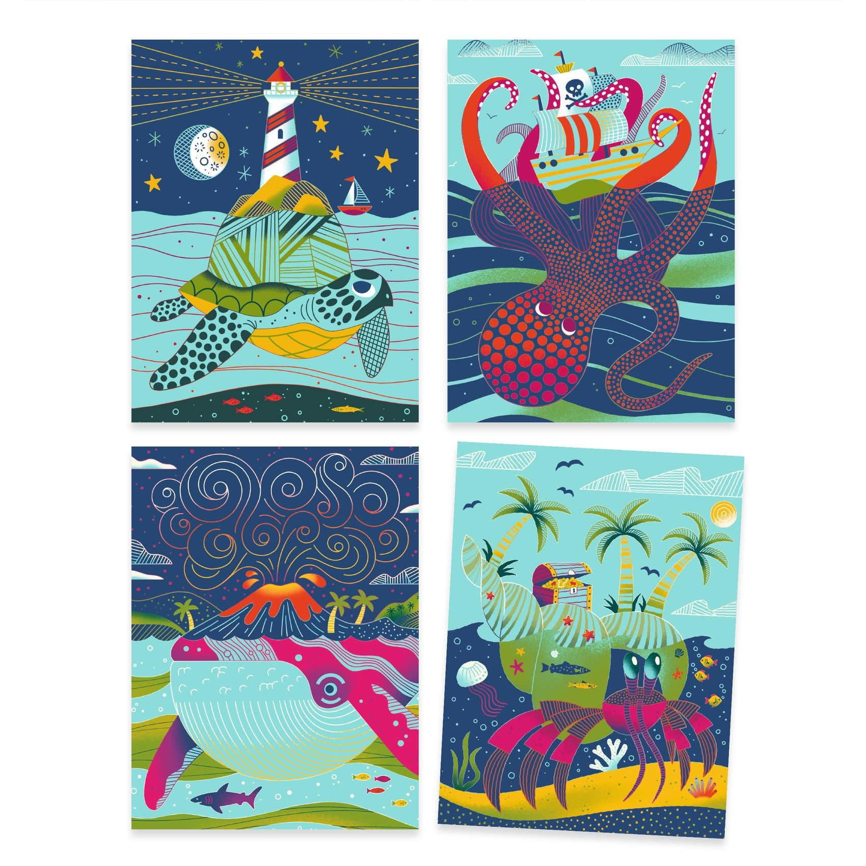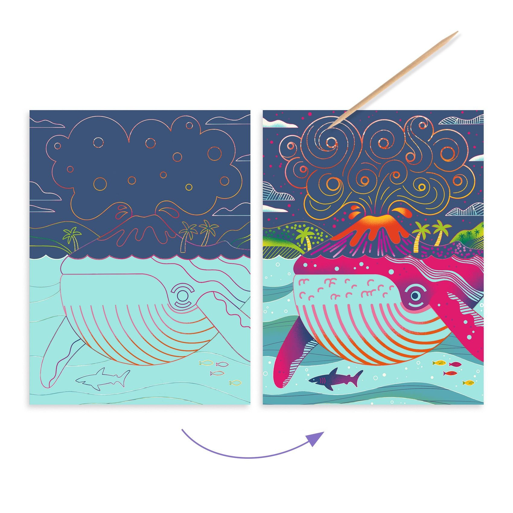 Objevujte fascinující obyvatele moří a oceánů s touto kreativní sadou. Krásné vyškrabávací obrázky jsou tématicky zaměřené na život v moři. V sadě jsou 4 předlohy, vyškravávací pero a návod. Trochu trpělivosti, hodně zábavy a krásný výsledek je zaručený. Hodí se pro děti od 5 do 8 let.