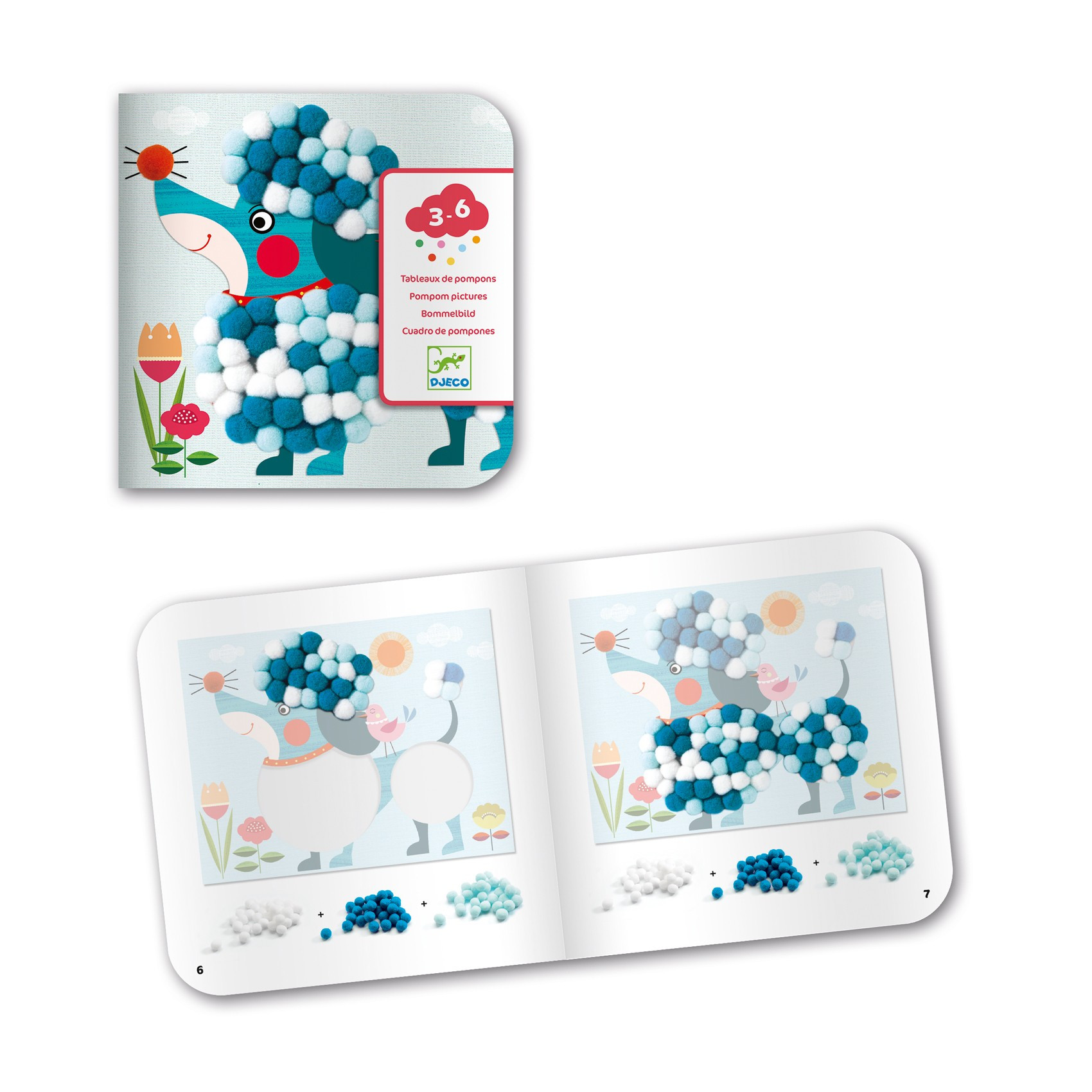 Ozdobte hravé pejsky koláží z barevných bambulek. Výtvarná hra pro děti od 3 do 6 let je ideální pro rozvoj jemné motoriky a tvořivosti. Sada obsahuje vše potřebné - 3 obrázky (23 x 20 cm), barevné bambulky a návod.