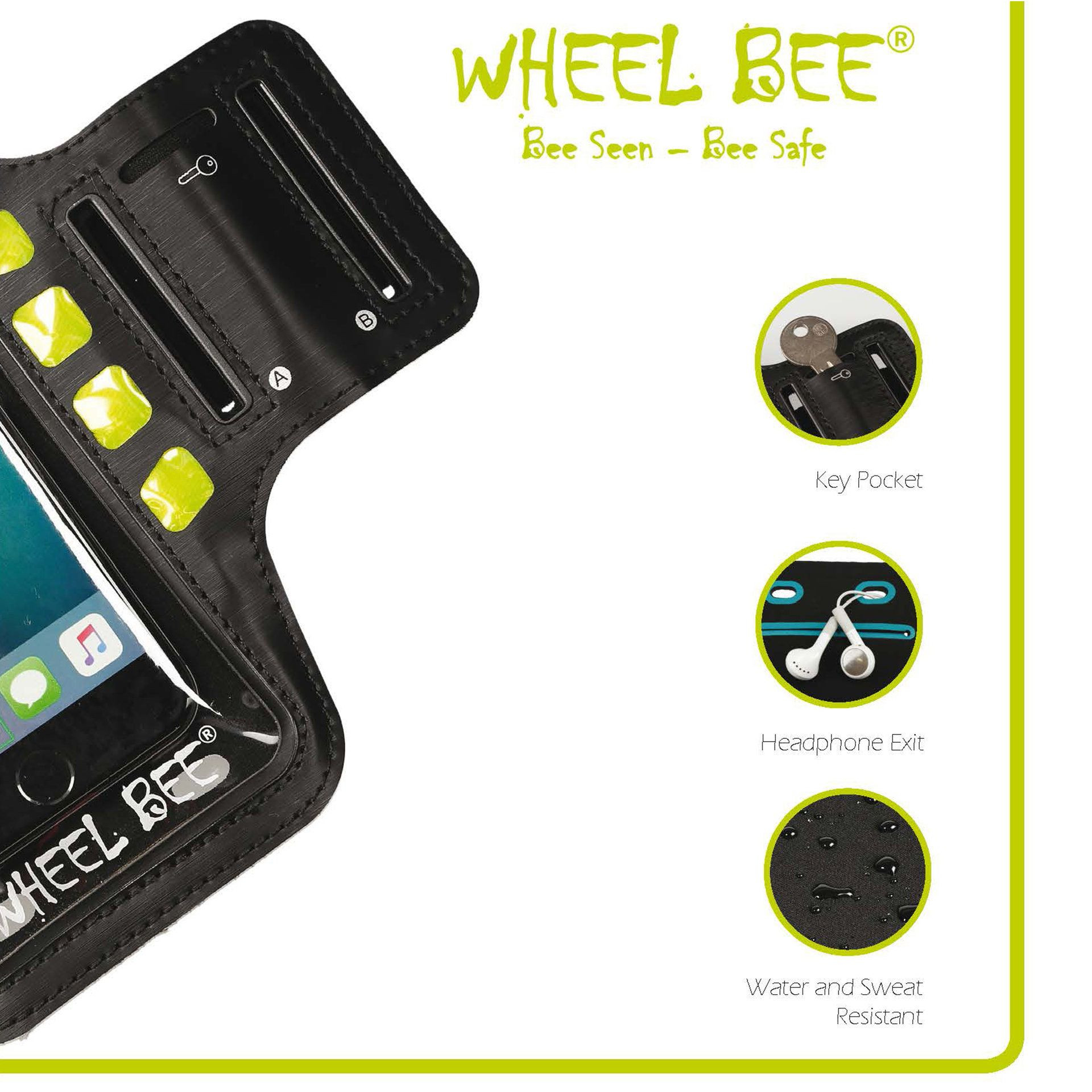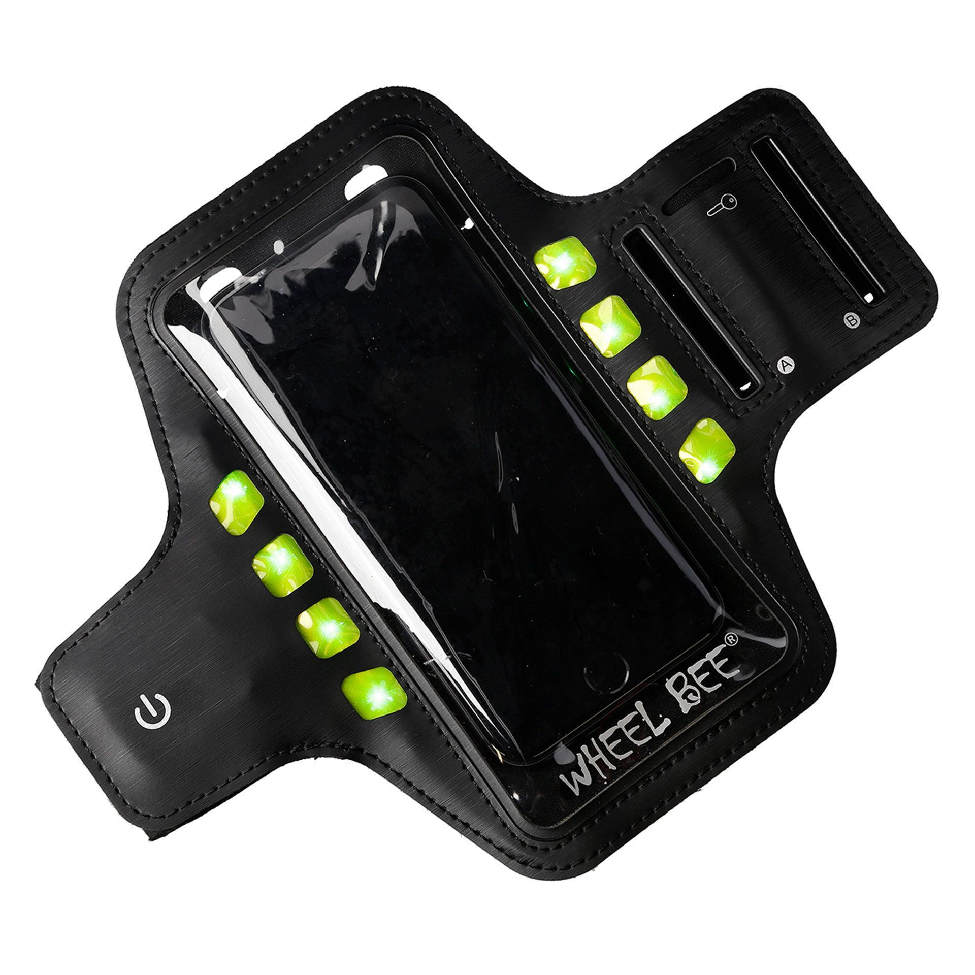 Sportovní pouzdro Wheel Bee LED zaujme i svou velikostí. Je vhodné pro mobilní telefony do 5,5 palce, včetně například iPhonu 8 Plus, který je opravdu velký. Ovládání telefonu probíhá přes průhlednou přední stranu, která je kompatibilní s dotykovou obrazovkou. Nefunguje pouze otisk prstu k odemčení. Řemínek je vyroben z lehkých materiálů a váží pouhých 50 g (včetně baterie).
