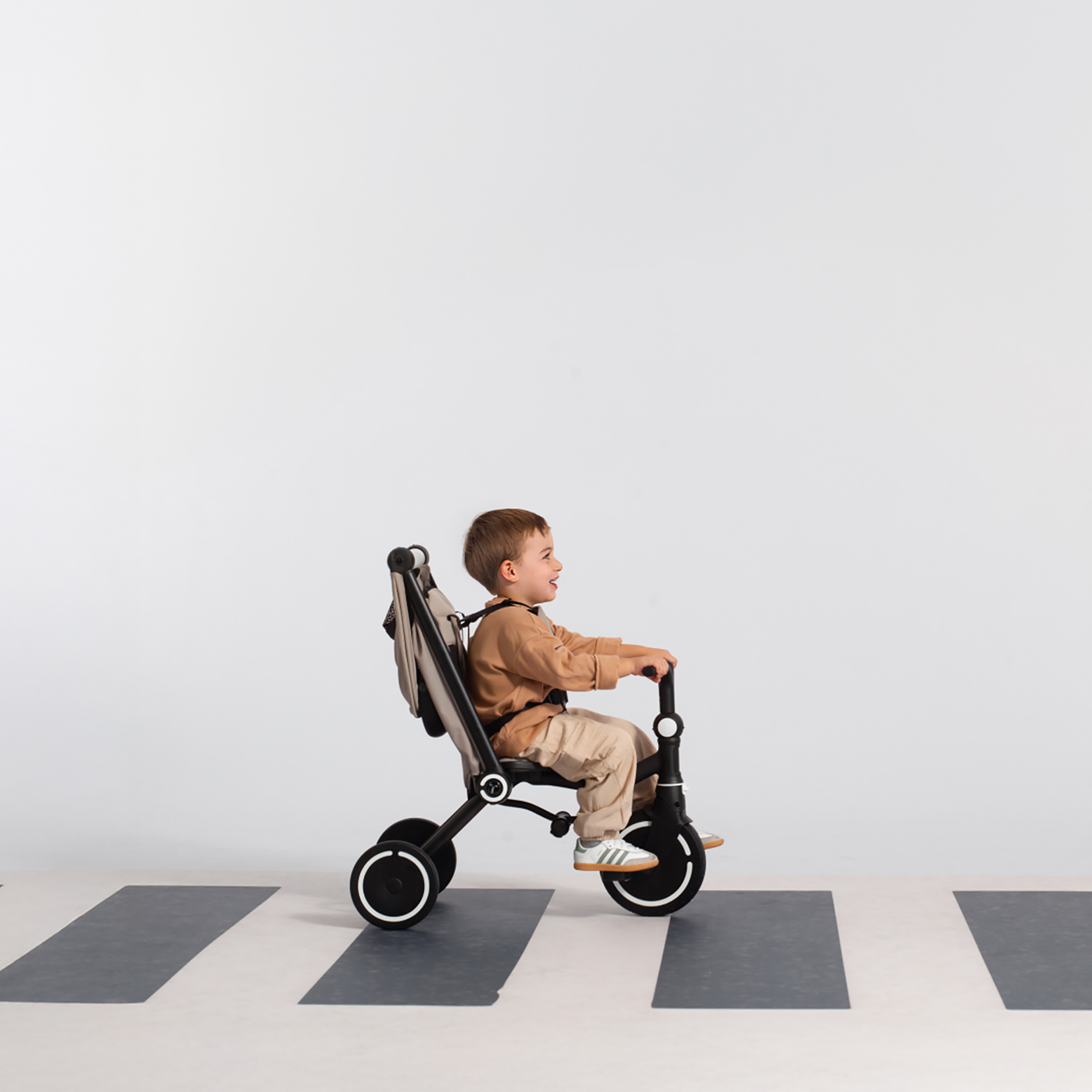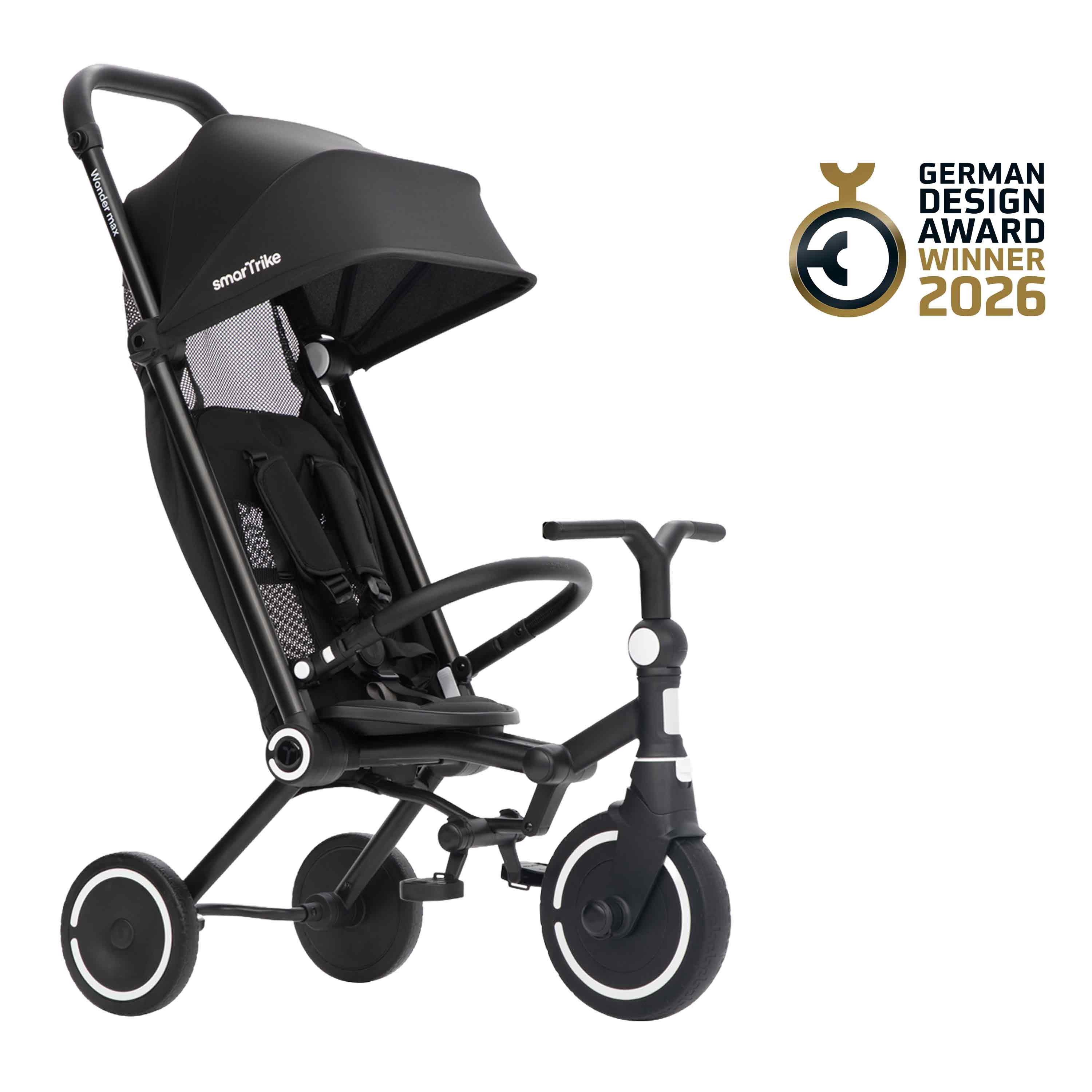 Wonder Max je multifunkční kočárek, který se stisknutím tlačítka promění v nezávislou dětskou tříkolku navrženou pro roky jízdy.