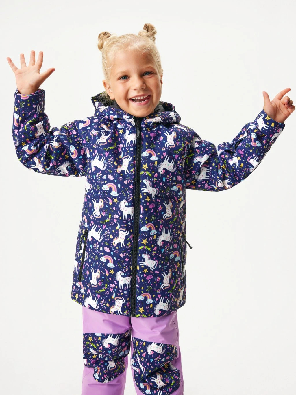 Manžetové zapínání v rukávech a sněhový pás brání vniknutí sněhu, zatímco kapsička na skipas nedočkavě vyčkává první lyžovačku. Bunda je navržena tak, aby doprovázela děti celé chladné období a přitom rostla spolu s nimi, i proto je vybavena pružnými náplety a stahováním v pase. A protože v Unuo myslí na každodenní praktičnost, její design snadno sladíte s kalhotami, čepicí i nákrčníkem.
